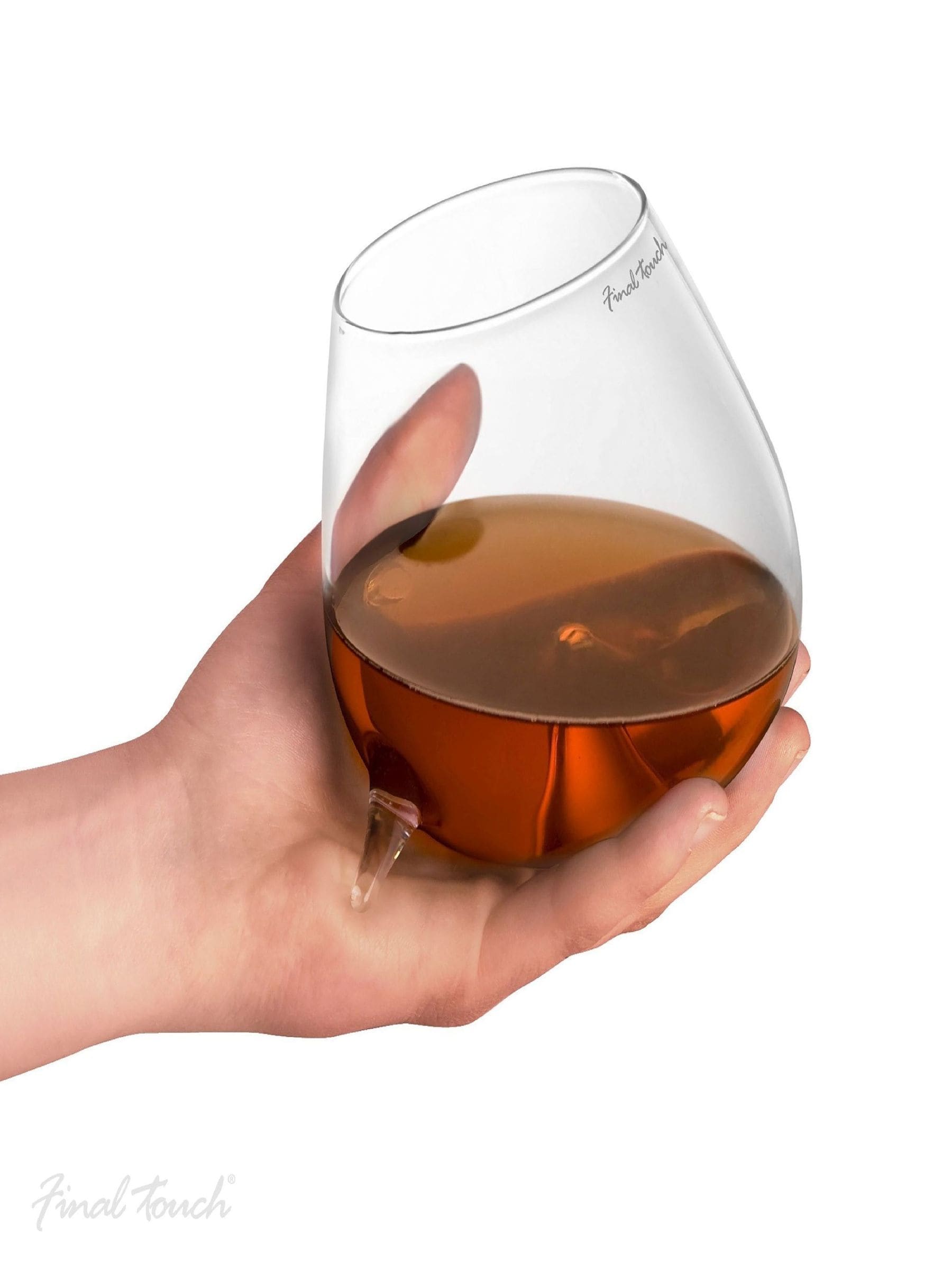 These giant brandy glasses are moulded to fit perfectly into your hand allowing you to sip and warm the drink at the same time. The three feet on the glass also allow the glass to sit safely when put down. A raised mound inside allows the spirit to swirl around when sipping giving a better aroma and flavour. Suitable for cognac, armagnac and other warm spirits. Capacity: 600 ml H.13cms x D. 10cms x W. 10cm. Strong gift box: 27.3 x 13.1 x 16.5cm Handwash Only.