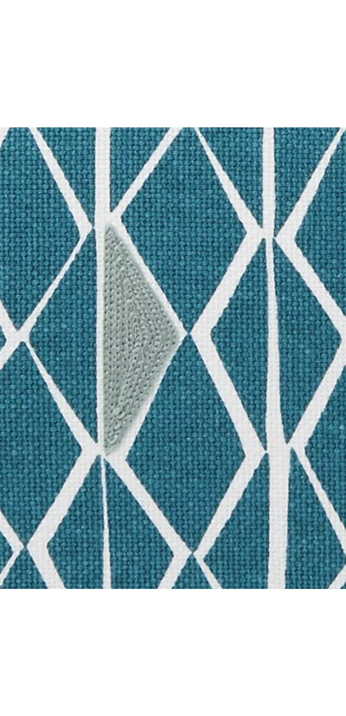 A contemporary, woven geometric with hand guided, chain stitched diamonds in a contrasting colour.