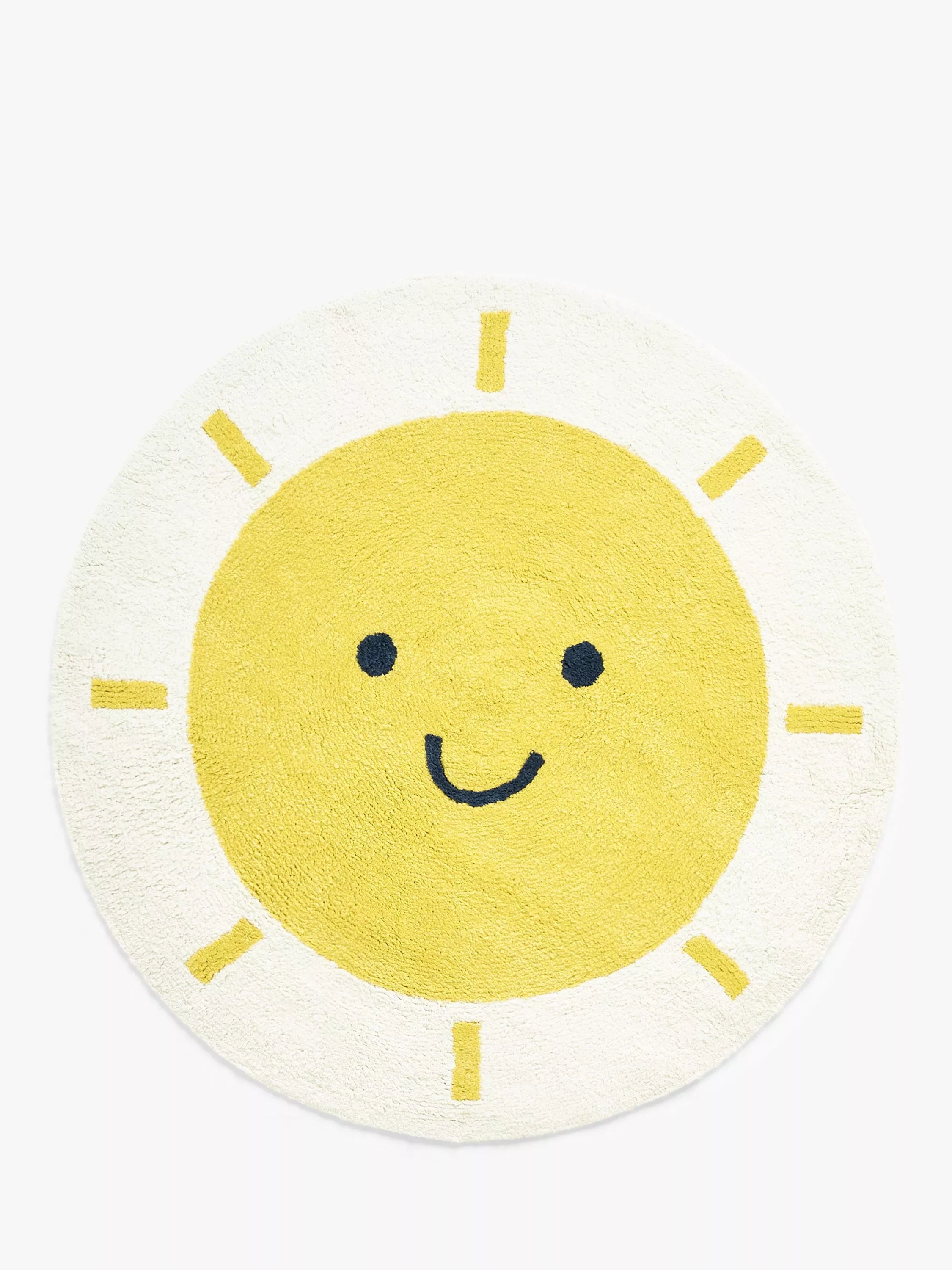 Add a little warmth and sunshine to their space with this wonderful happy sun rug. Woven in soft cotton, the rug has a very plush and playful finish.