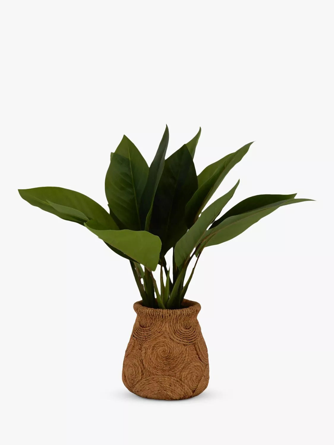 A great alternative to real plants if you don't want the worry or want to add a plant to a space that doesn't get a lot of daylight, each of the 16 artificial Banana tree leaves are wired inside so you can adjust the plant to the exact shape you want. In subtly variant shades of green, it's set into a ceramic vessel finished with a rattan basket effect.