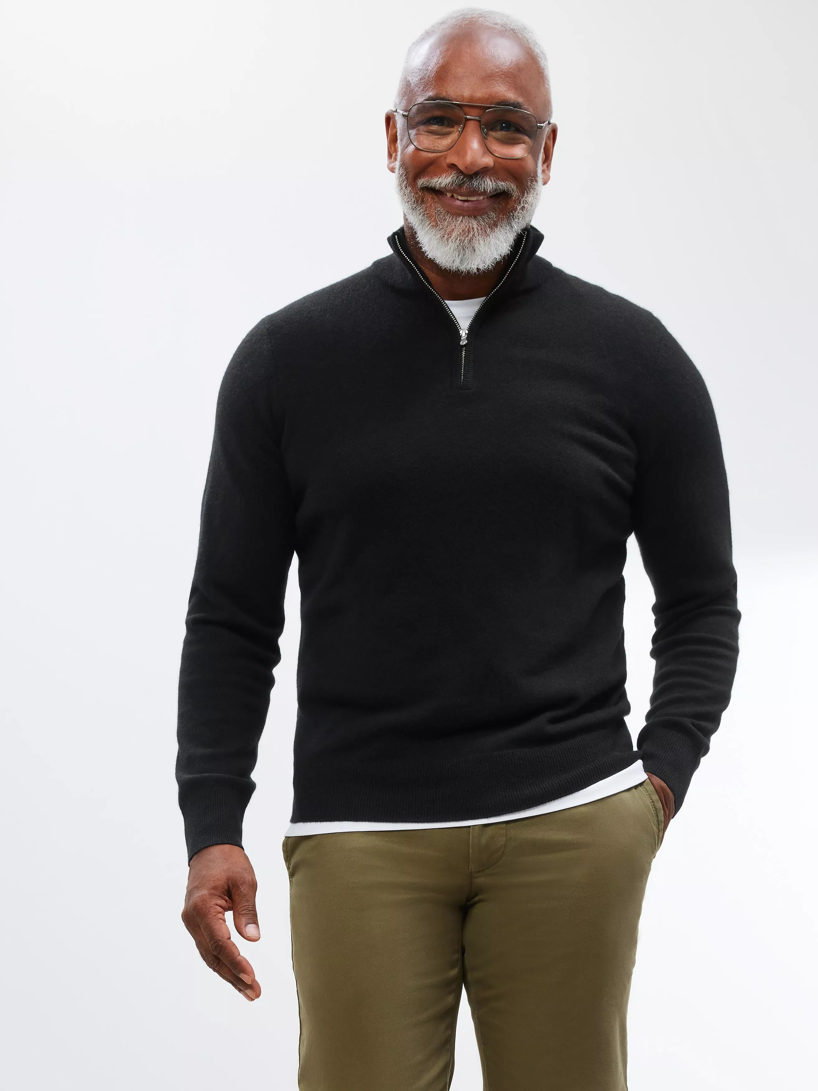 A luxe take on a comfortable casual style, this knit is detailed with a half-zip front and will combine neatly with anything from joggers to denim.
