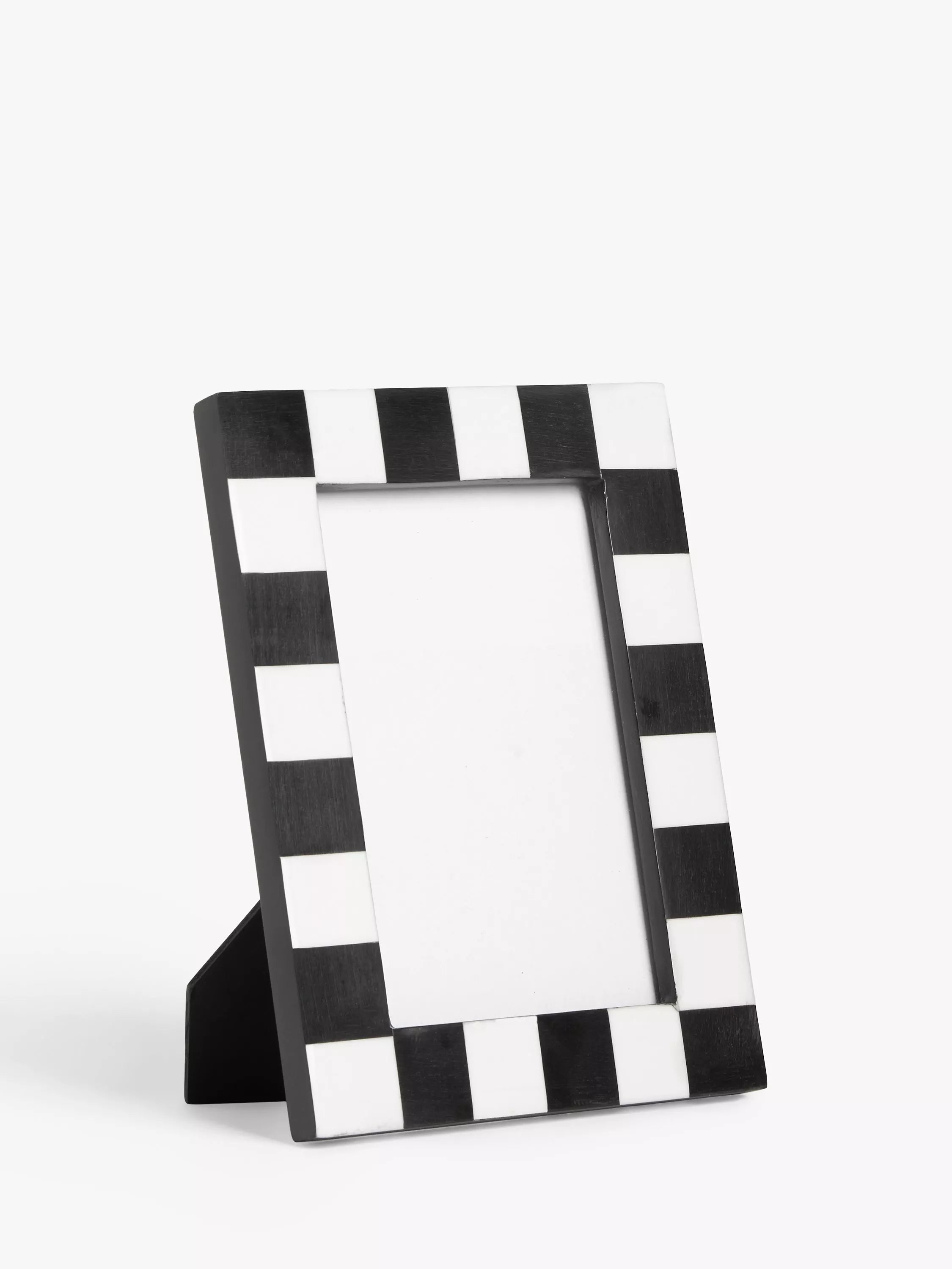 Handcrafted photo frame with a striking checkerboard design made of smooth resin. Ready to display freestanding, vertically or horizontally.
