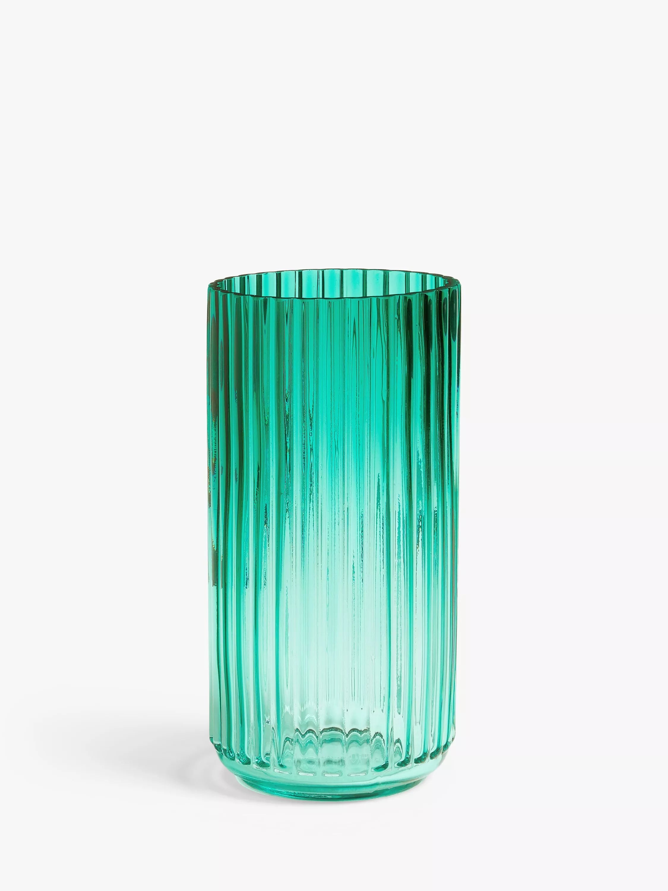 We've used a classic column shape for our Cylinder vase, but shaped the glass with ridges for some texture and coloured it to add personality.
