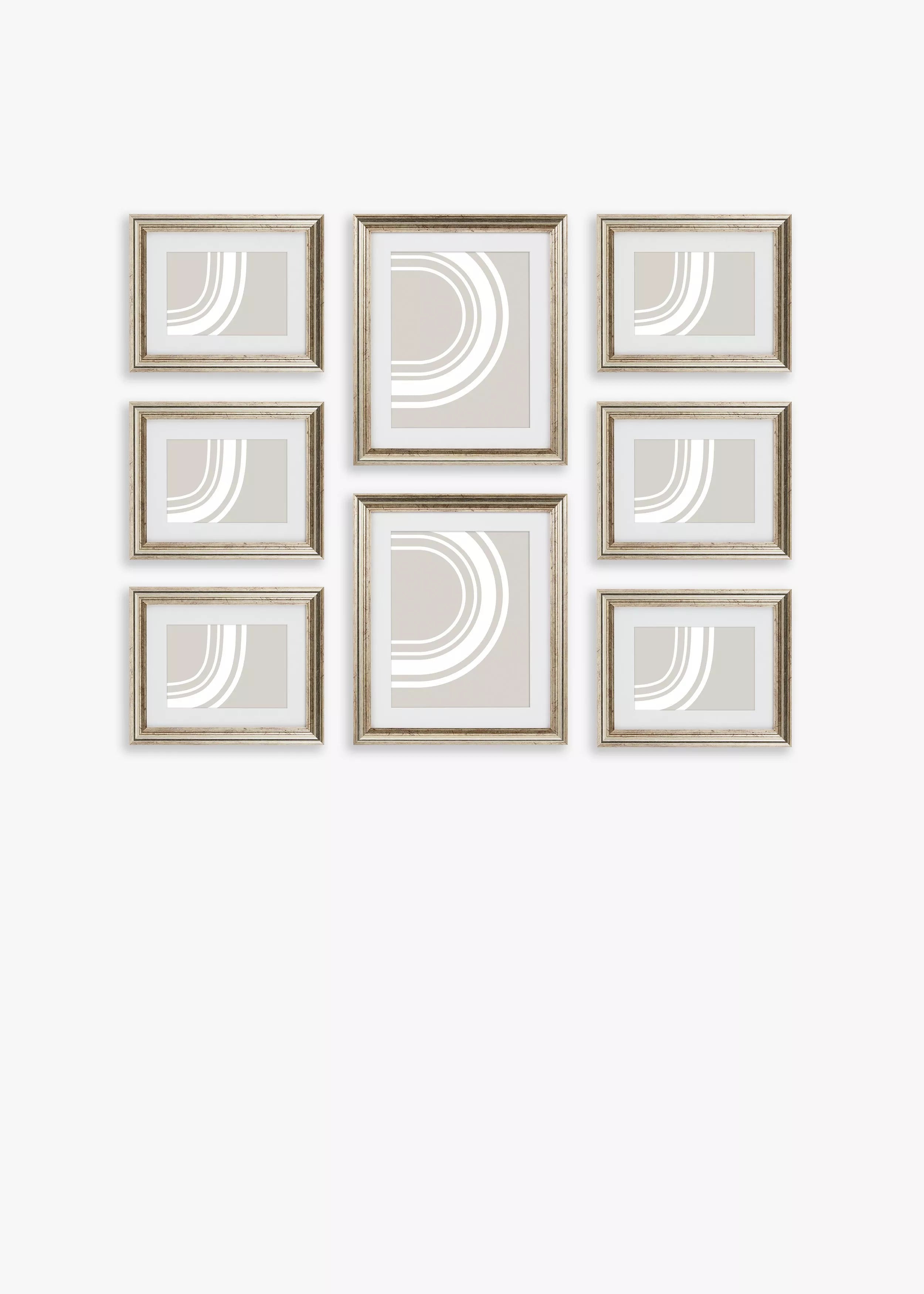 Create a gallery wall of photos with this set of eight photo frames, all with matching antique metallic-effect finishes. Ideal for displaying similarly themed images together, they come with window mounts. Each frame is light in weight and easy to wall mount, horizontally or vertically.