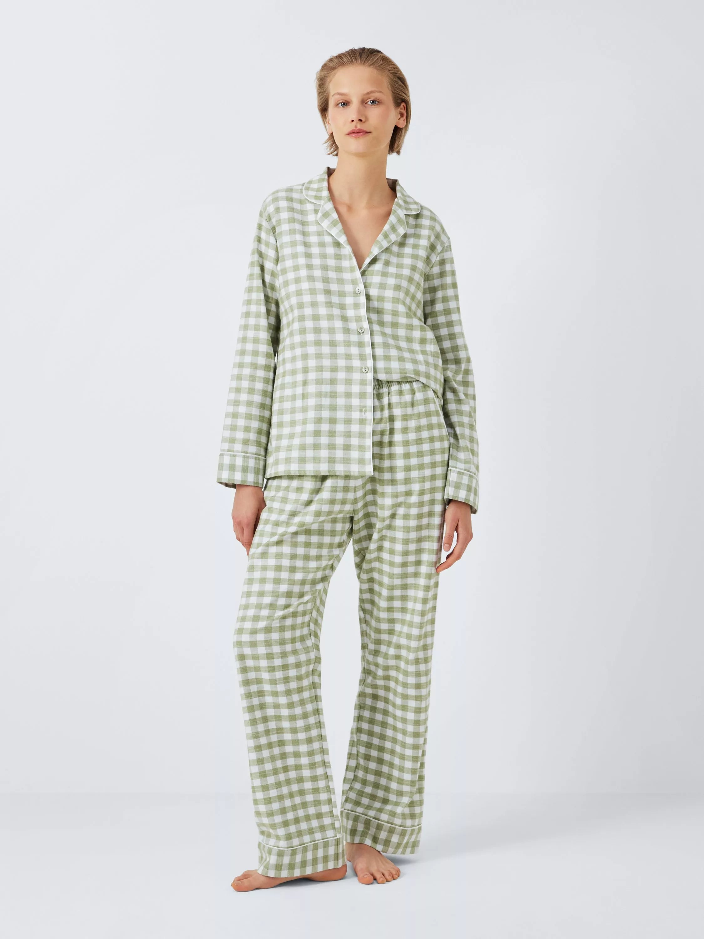 Just in case the classic shirt shape with revere collar and fabric-coloured buttons wasn't cute enough, we adorned this pyjama set with a timelessly charming gingham, too. The bottoms feature a fully elasticated waistband and handy side pockets.