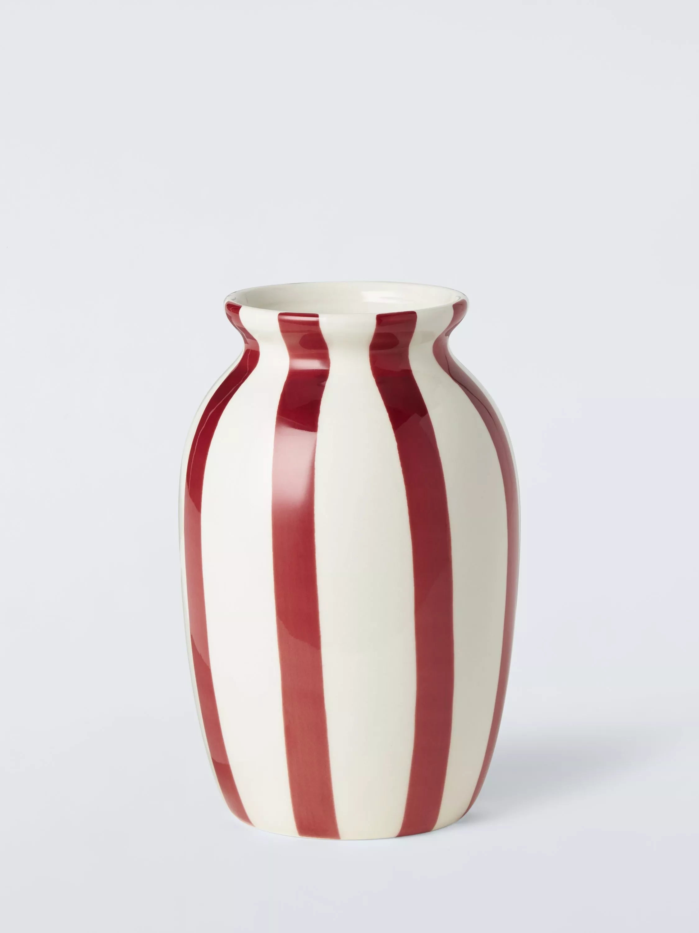 Hand-painted with candy stripes, this glazed stoneware vase will add a pop of colour and character to your space.