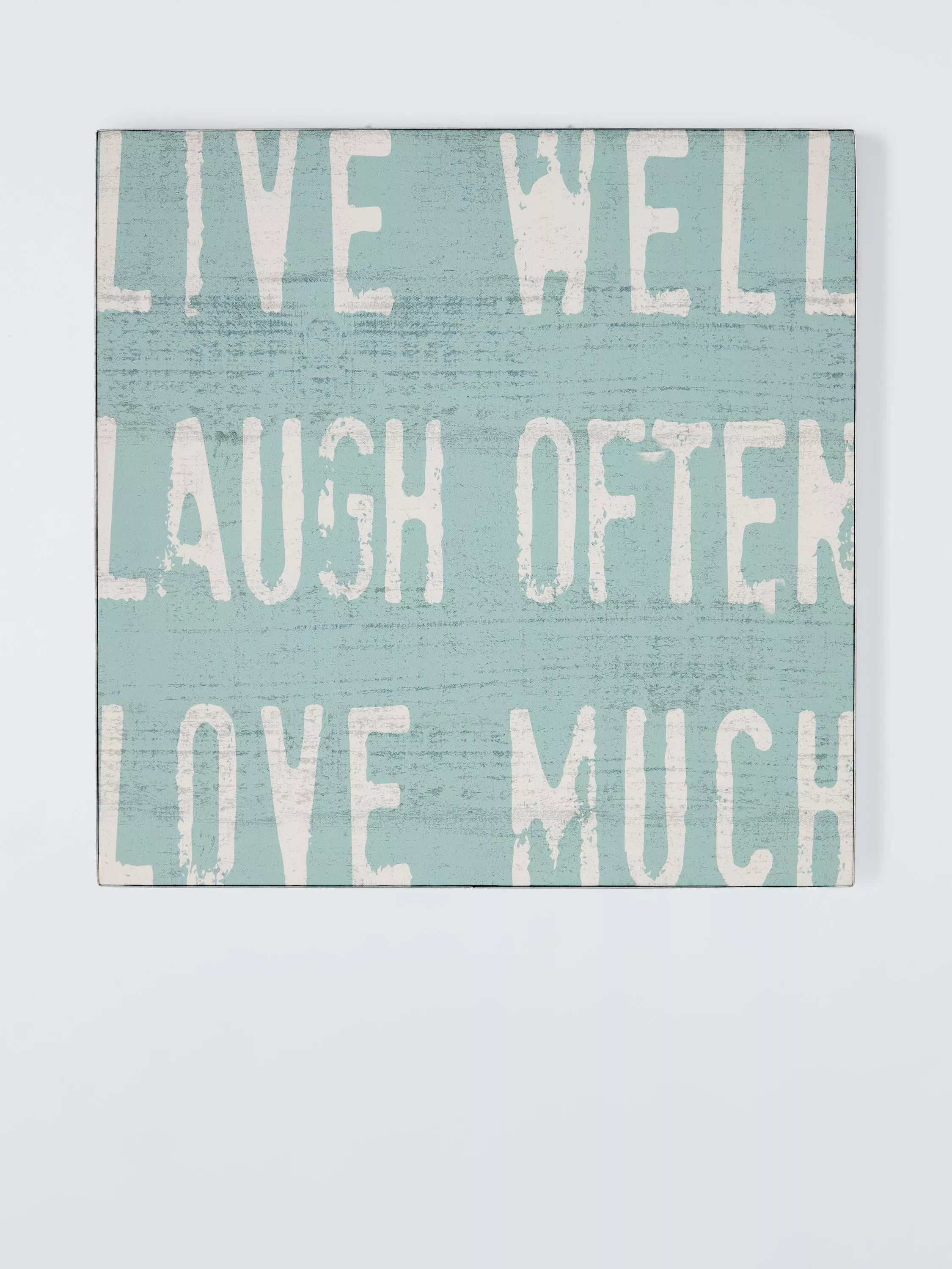 Words to live by, from artist Hollie Garrett. "Live well, laugh often, love much," reads this typographic print, completed with a metal frame.