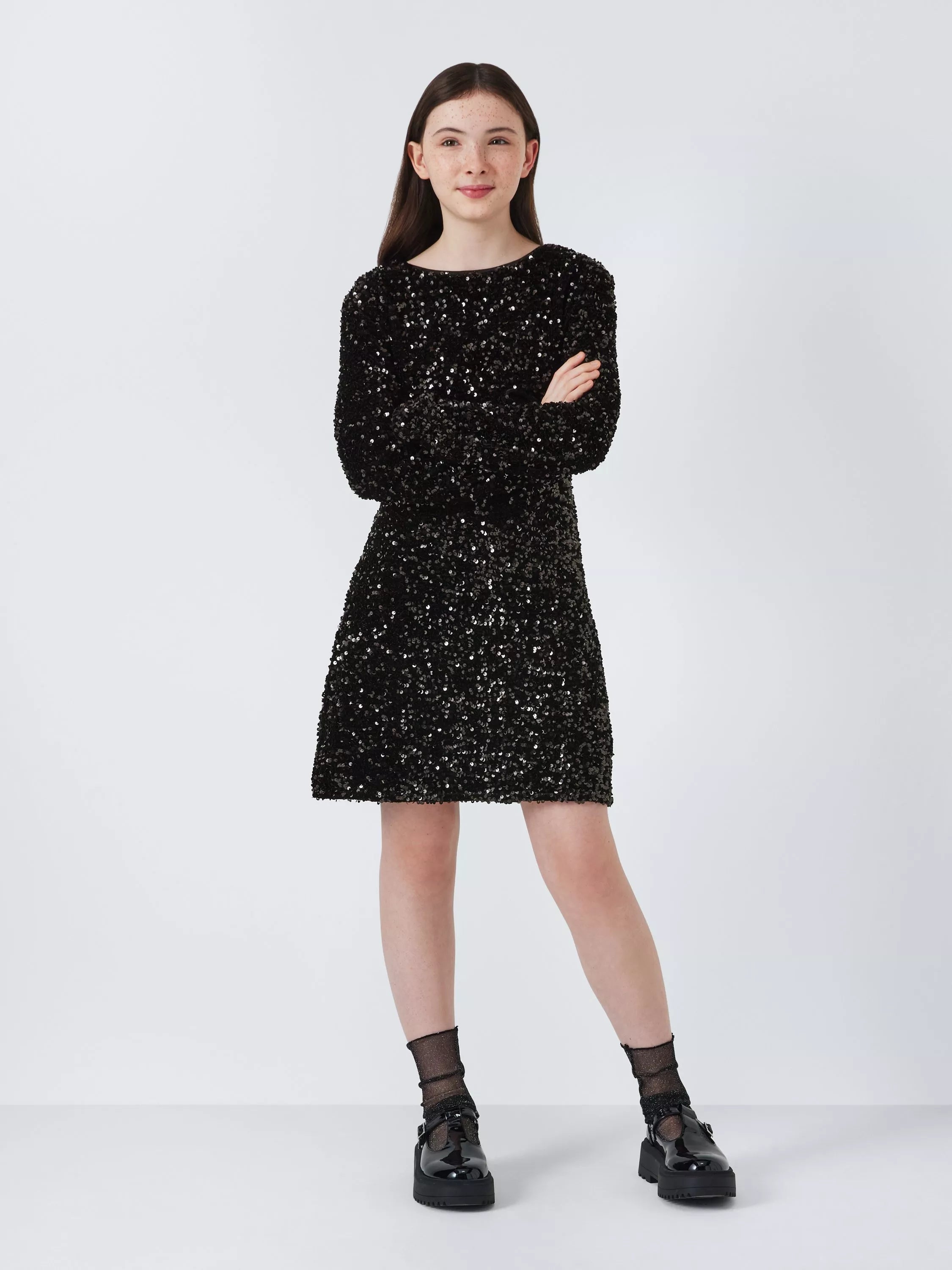 Make your little one shine at any party with this stunning John Lewis Kids' Velour Sequin Party Dress. The luxurious velour and dazzling sequins create a truly special occasion outfit, perfect for birthdays, weddings, or any special event. This dress is sure to turn heads and make your child feel like a princess.