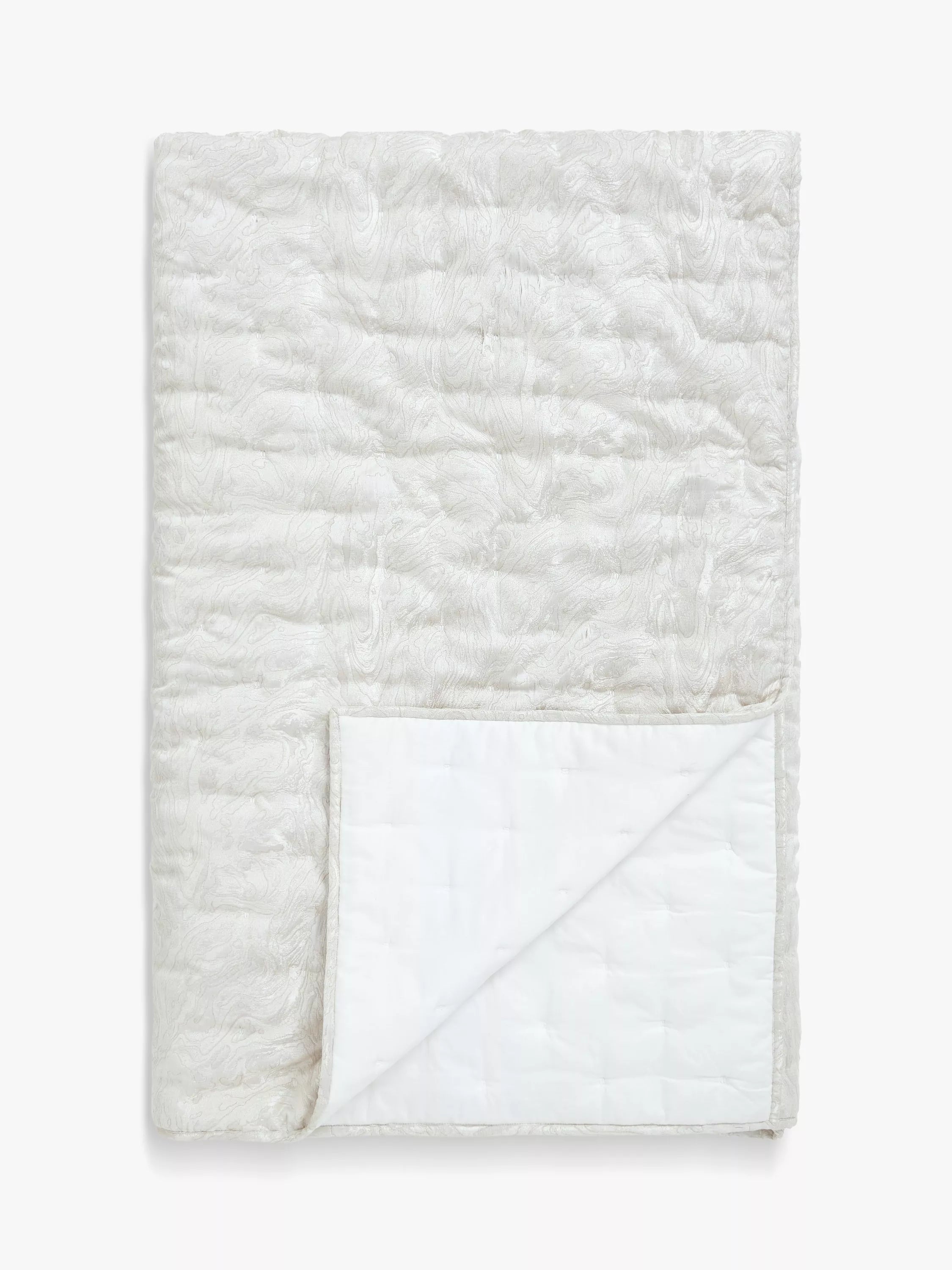 A marble effect print makes this hand-quilted bedspread the ideal choice for promoting a relaxing and restorative ambience.