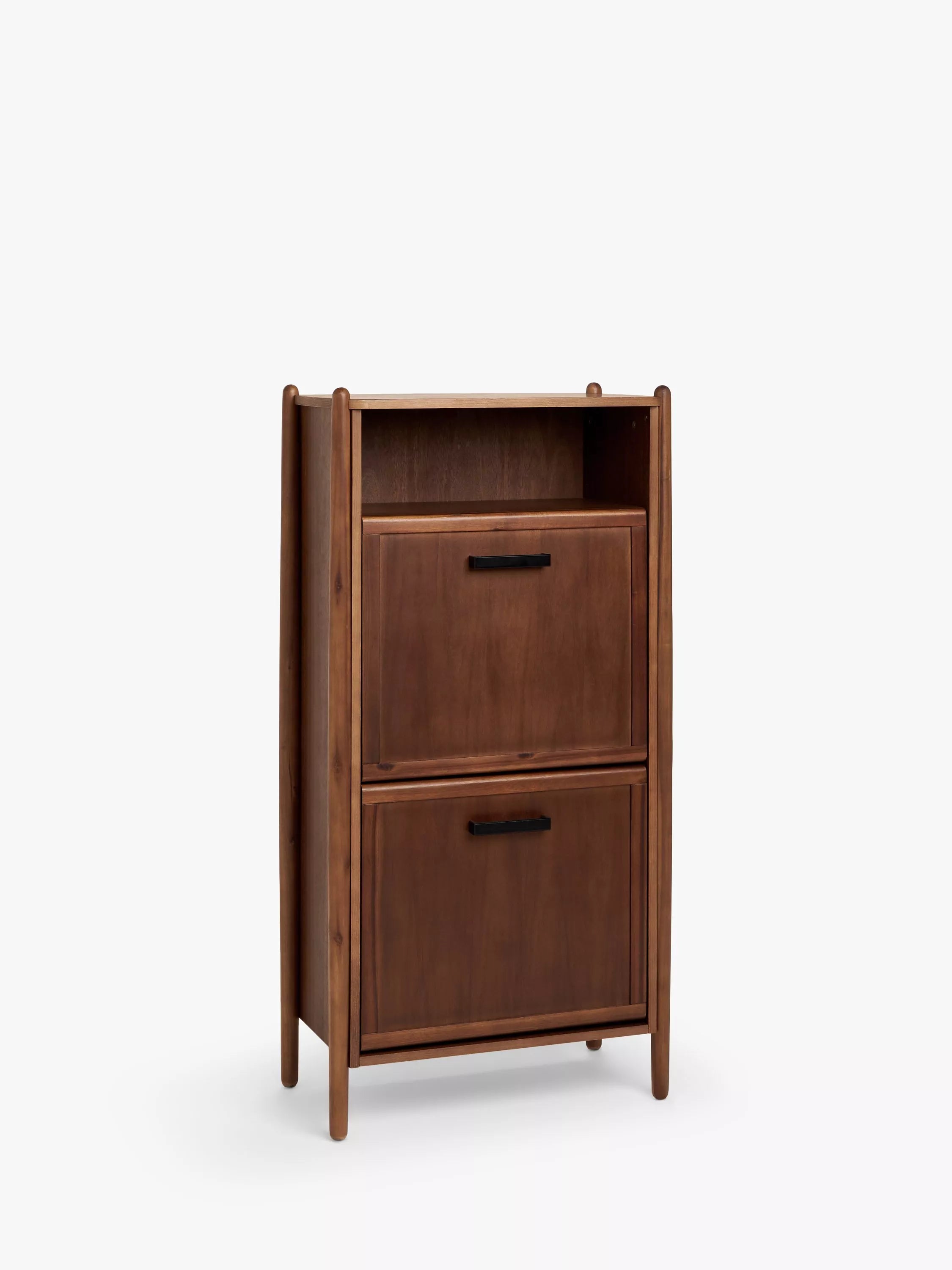 This stained acacia wood rack features two pull-out tiers so you can store all your footwear neatly away. There's also a narrow shelf at the top for additional storage.