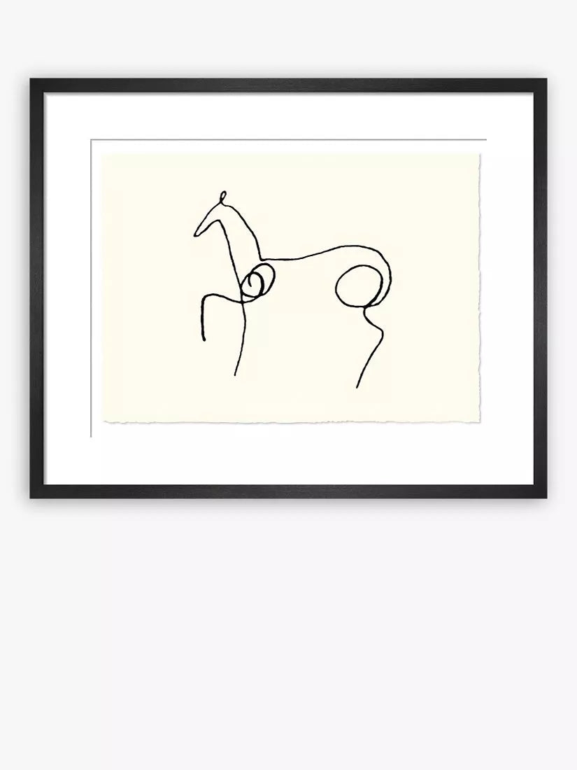 'Cheval' by Pablo Picasso. During the early 20th century, a number of artists including Pablo Picasso were influenced by the simple, stylised images produced by non-Western societies. As a result, Picasso produced a set of simplified animal drawings, including 'La cheval' (horse), all executed with a single unbroken line.
