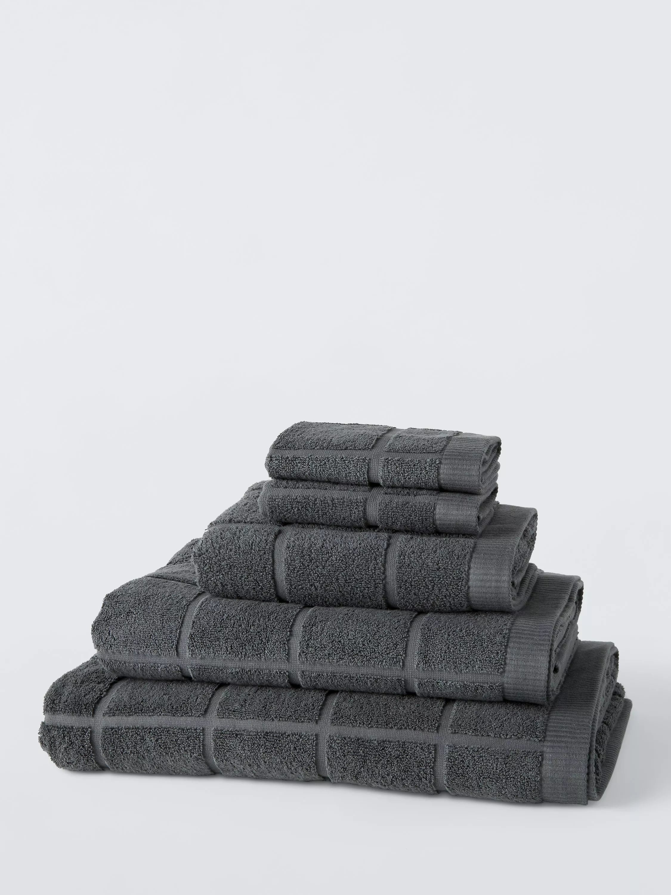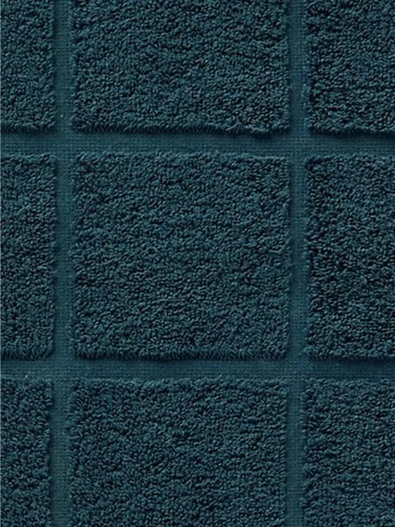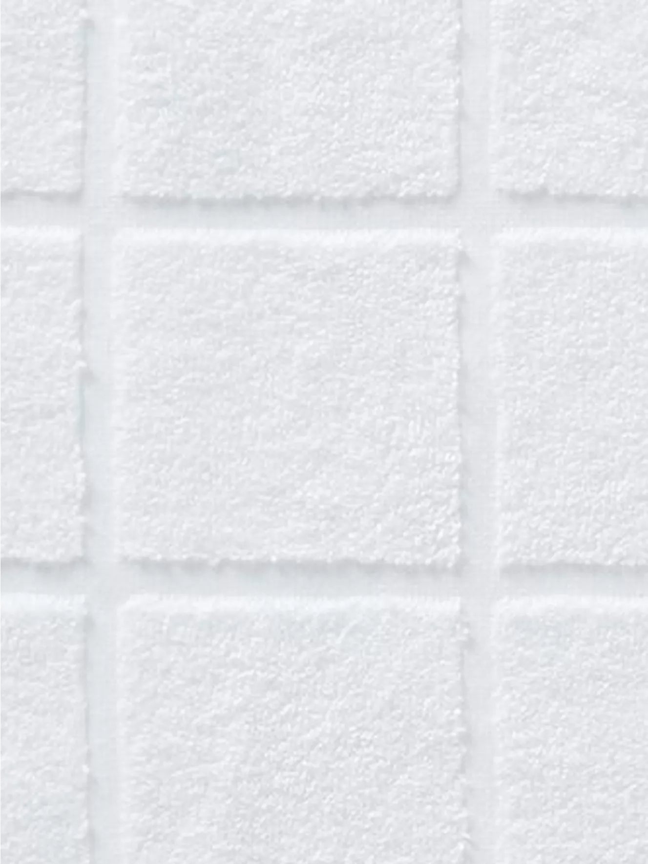 Plain-coloured towels with soft, looped pile squares on one side to change up your bathroom style.
