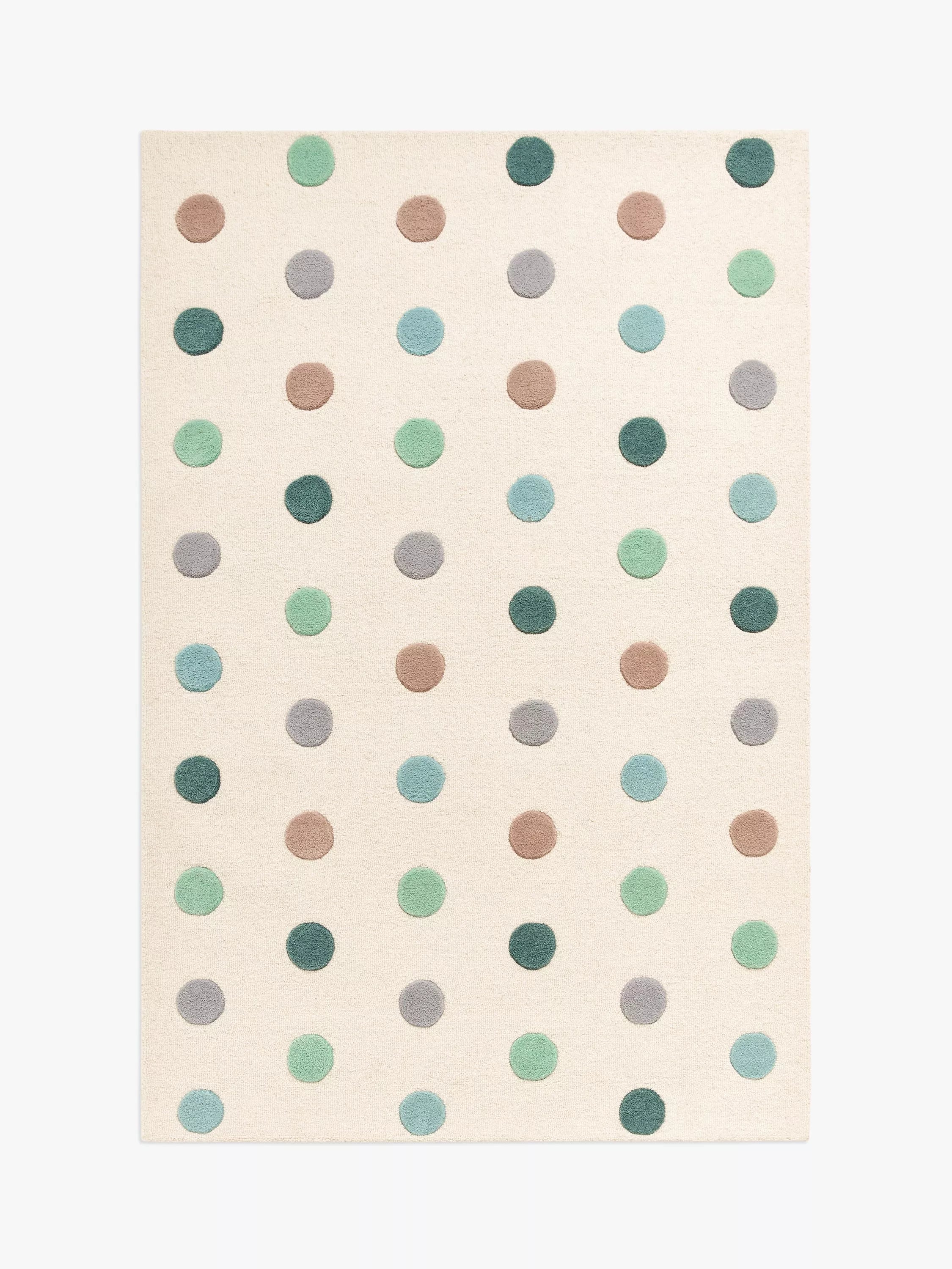 Coloured Polka dots never go out of style. Made with a plush wool pile, this is a perfect playroom rug.