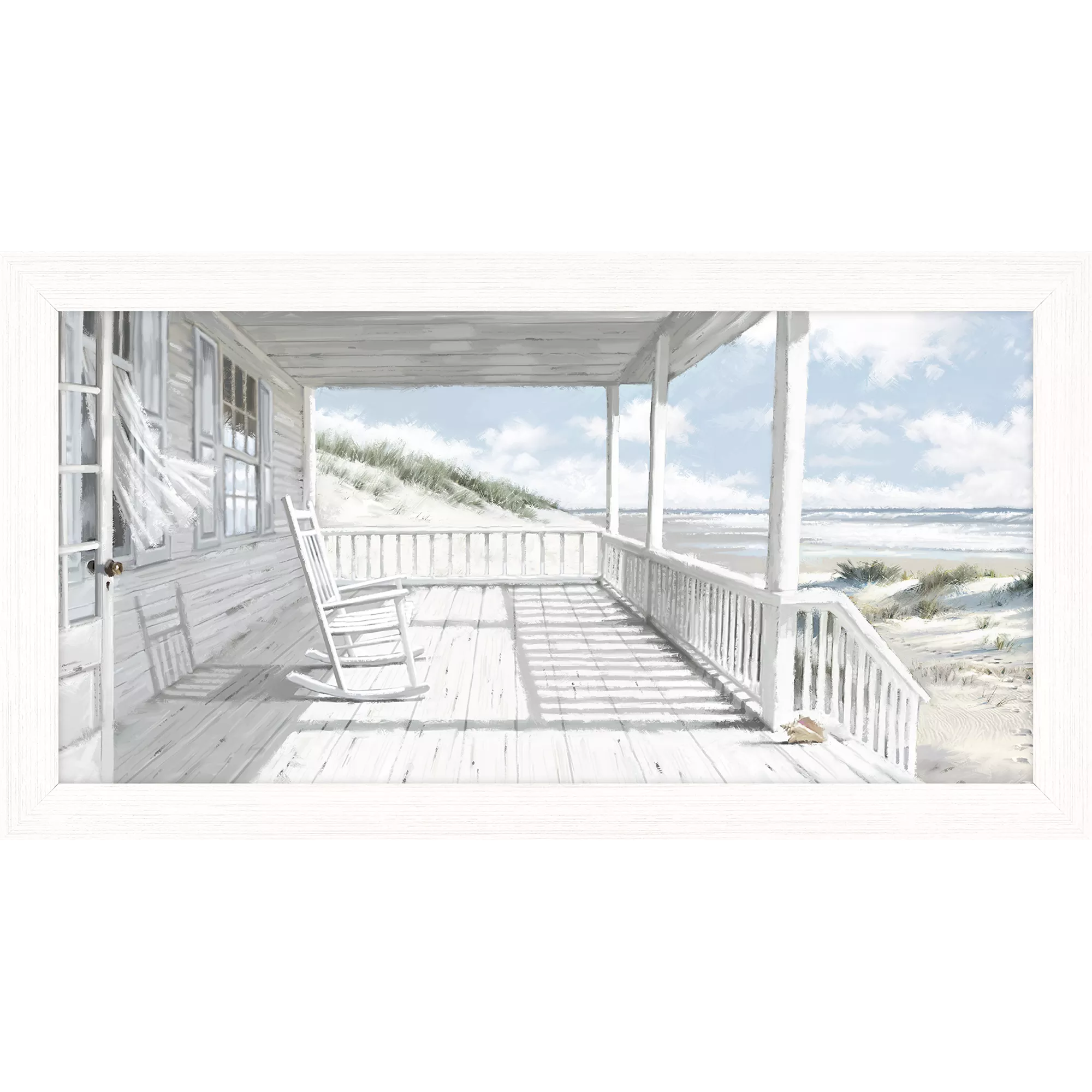 A beach house porch offers the best vantage point in this framed coastal landscape by Richard Macneil.