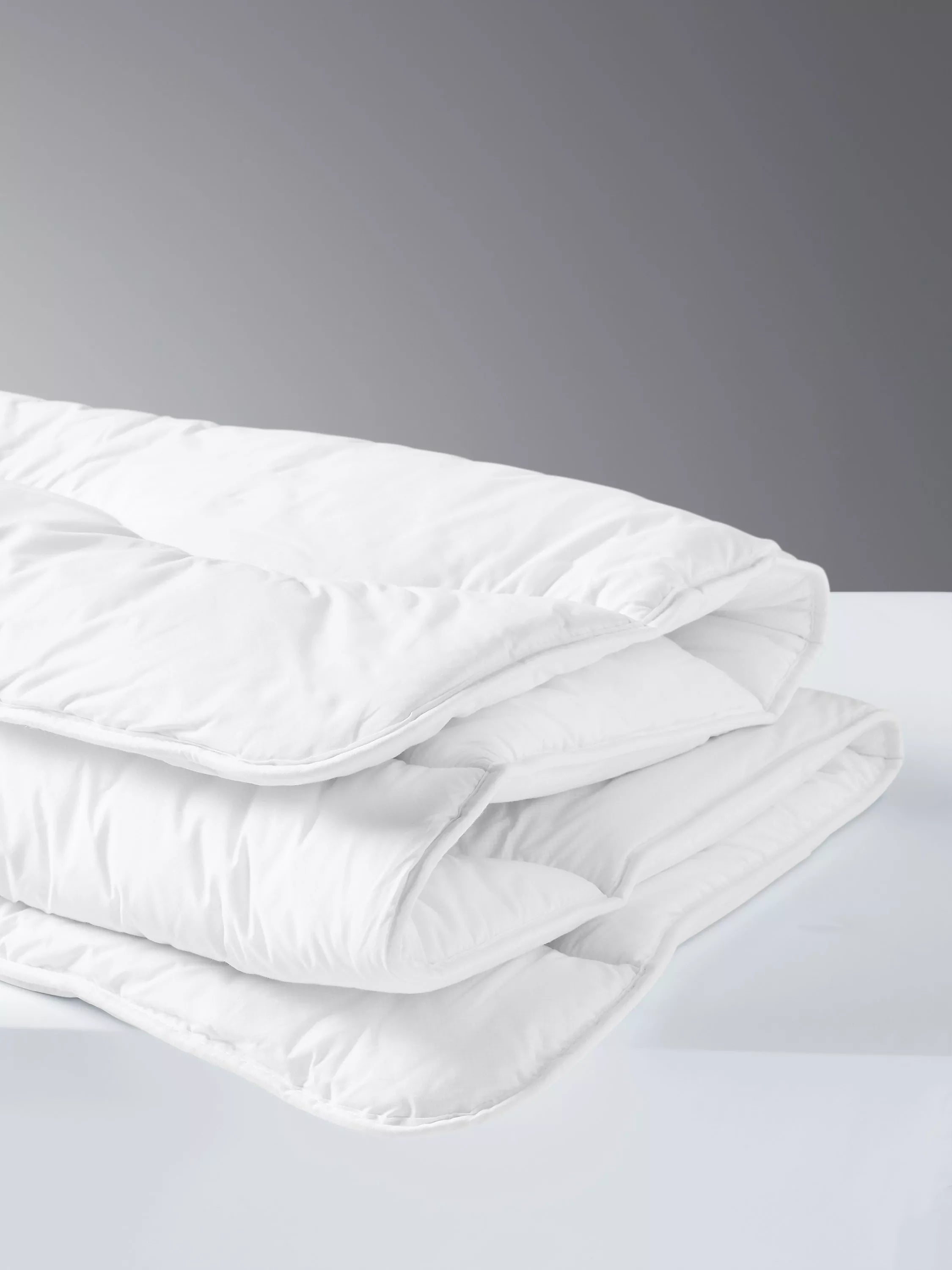 Enjoy ultimate sleep comfort with the John Lewis Temperature Regulating Duvet. This 10.5 tog duvet cleverly adapts to your body temperature, keeping you cool or warm as needed for a restful night's sleep. Perfect for a luxurious and comfortable night’s sleep.