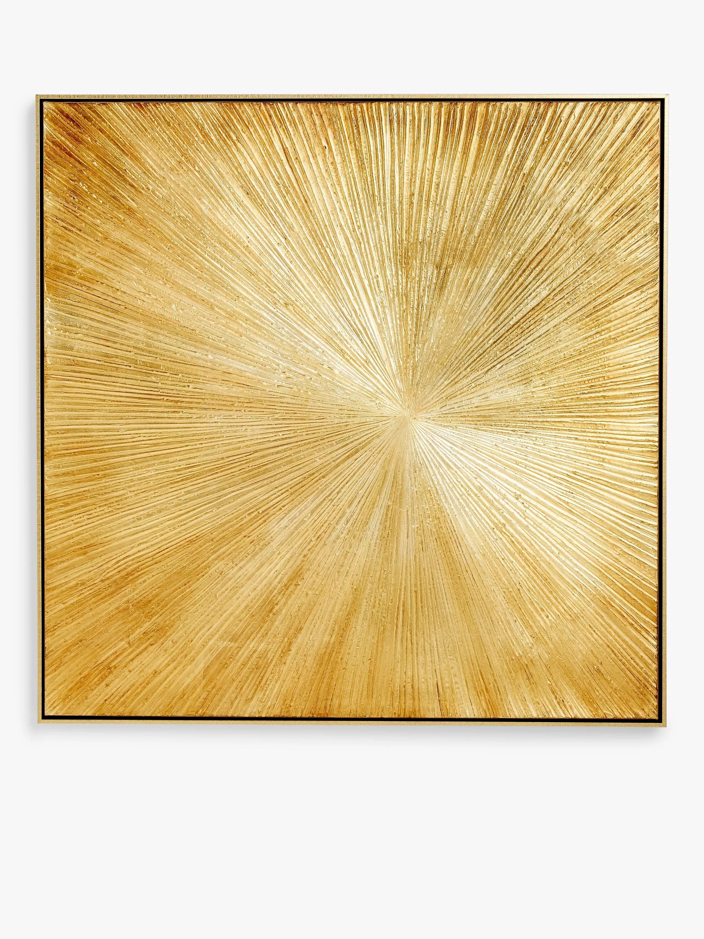 An abstract starburst-style large canvas print in warm tones, 'Temptation'. Made with a metallic-effect frame, it comes ready to hang on your wall using the D-ring fittings on the back.