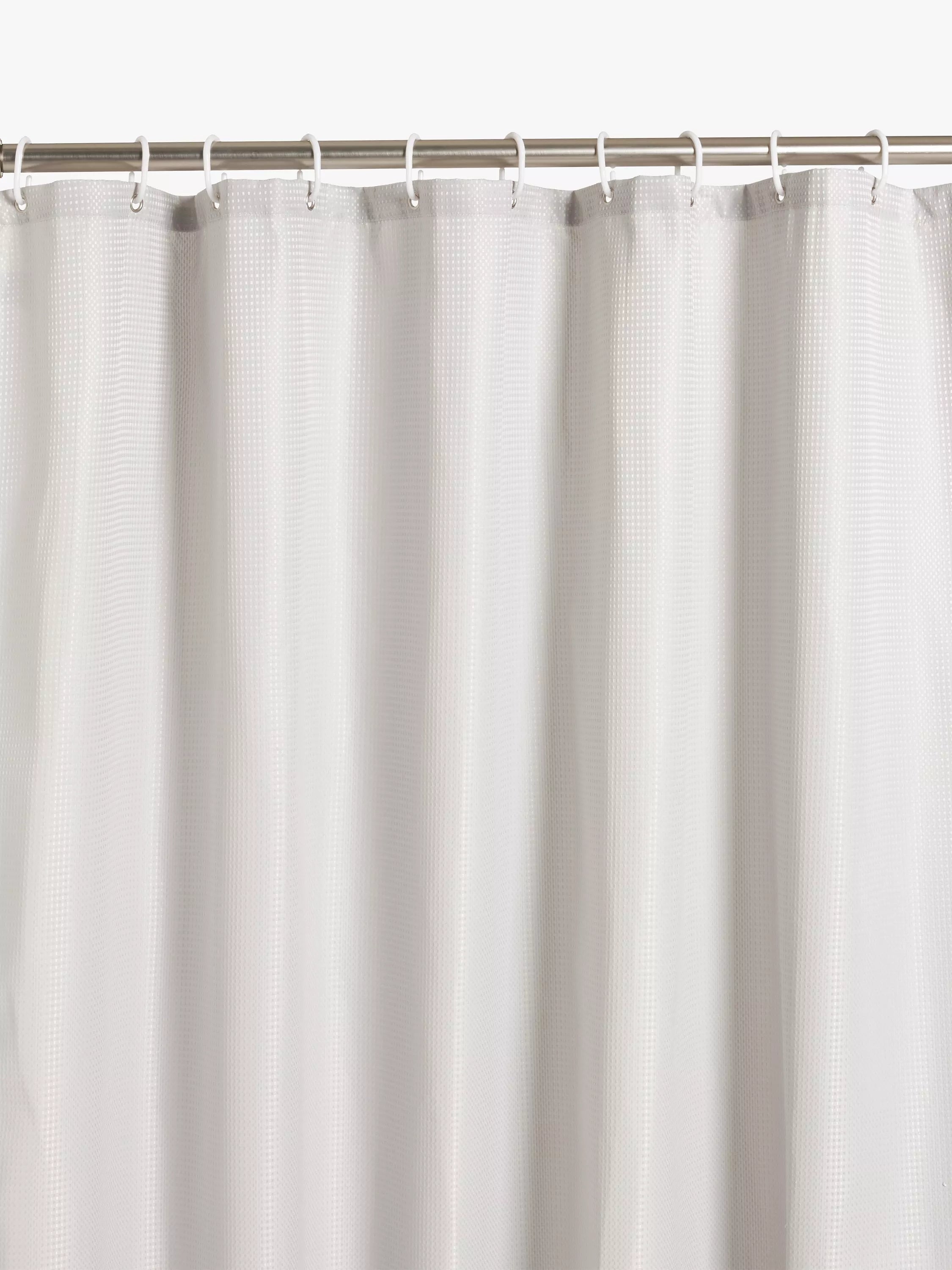 This soft, waffle-textured shower curtain is made from recycled polyester.