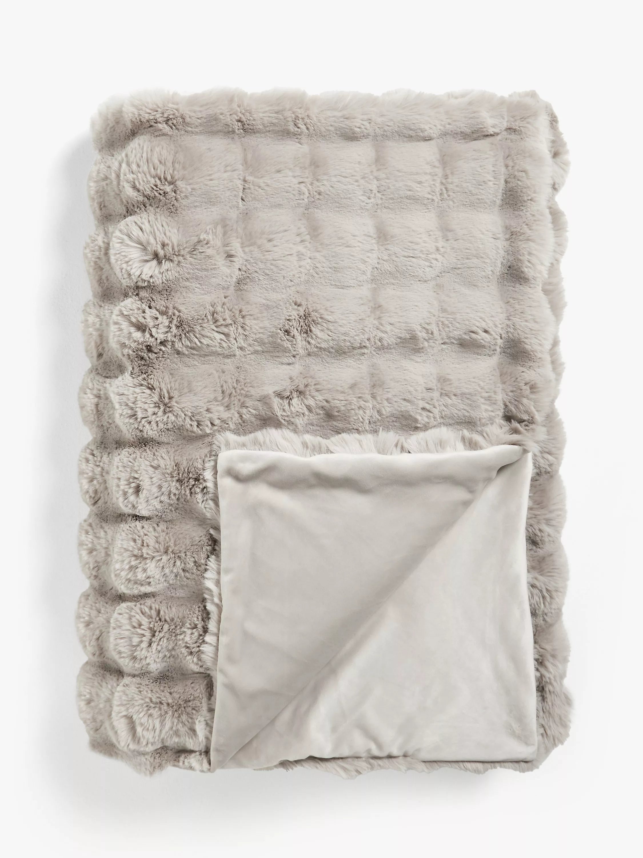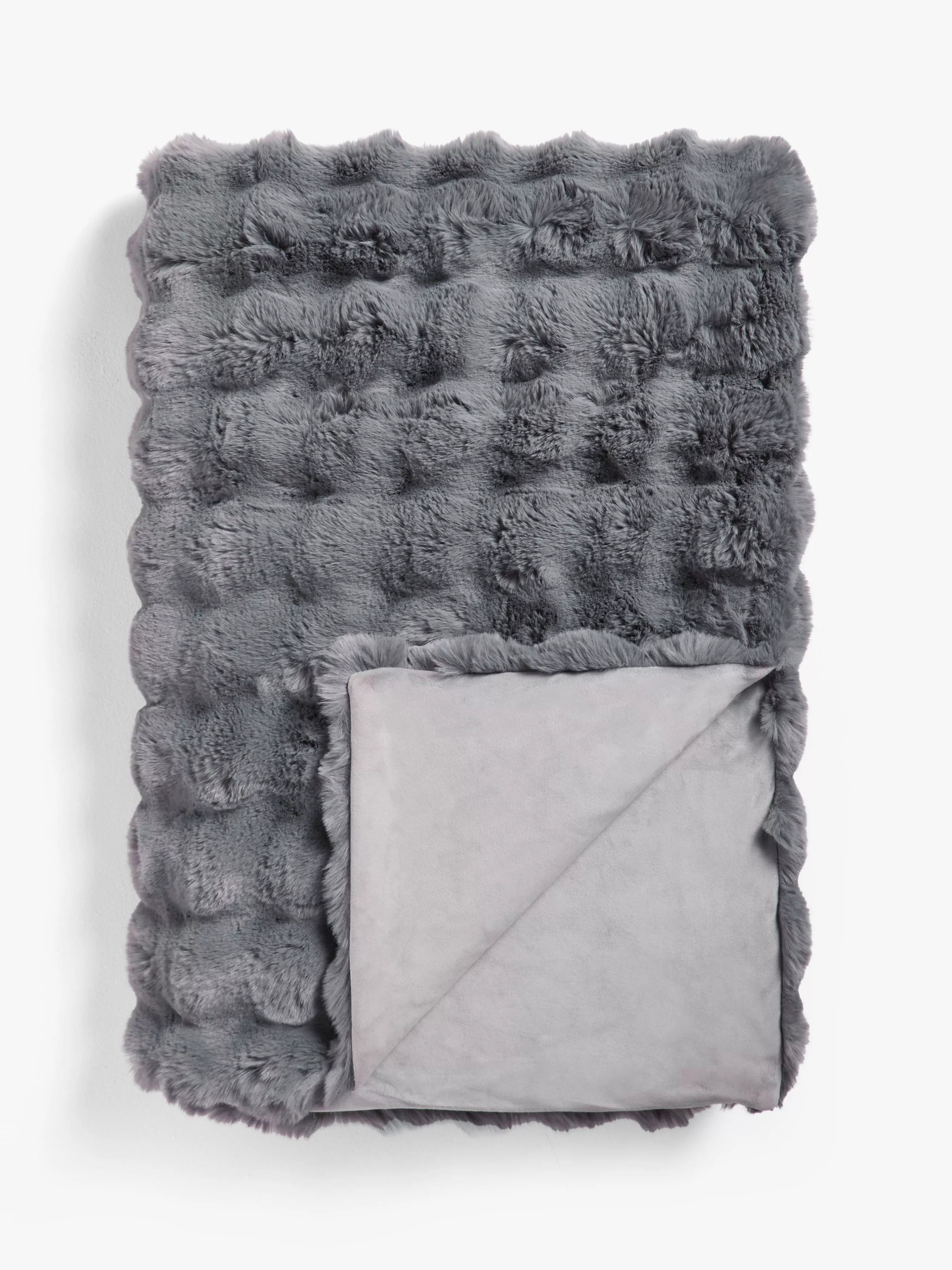 This luxury textured faux fur throw has a super soft hand feel and makes a cosy extra layer for cold winter nights.