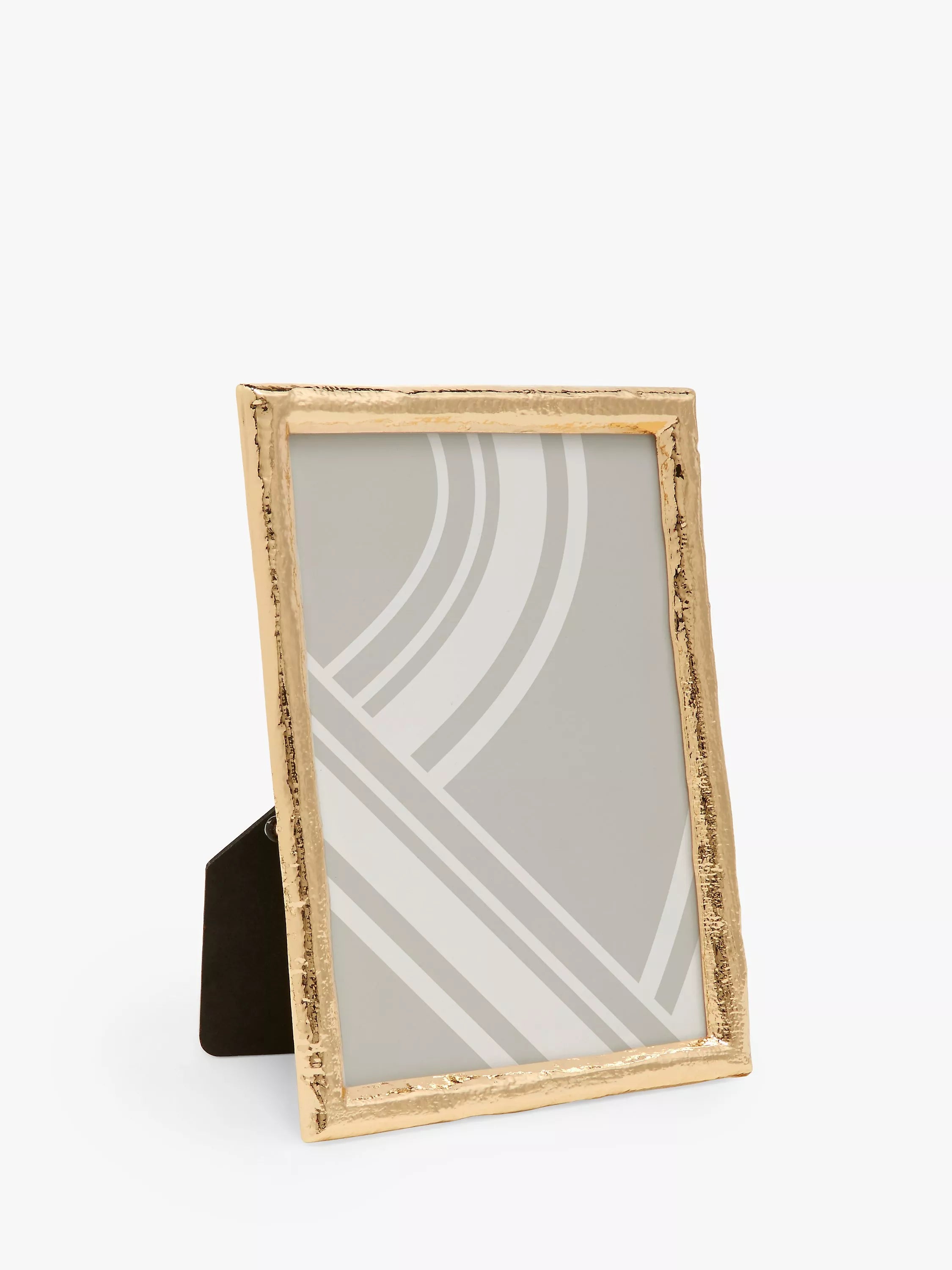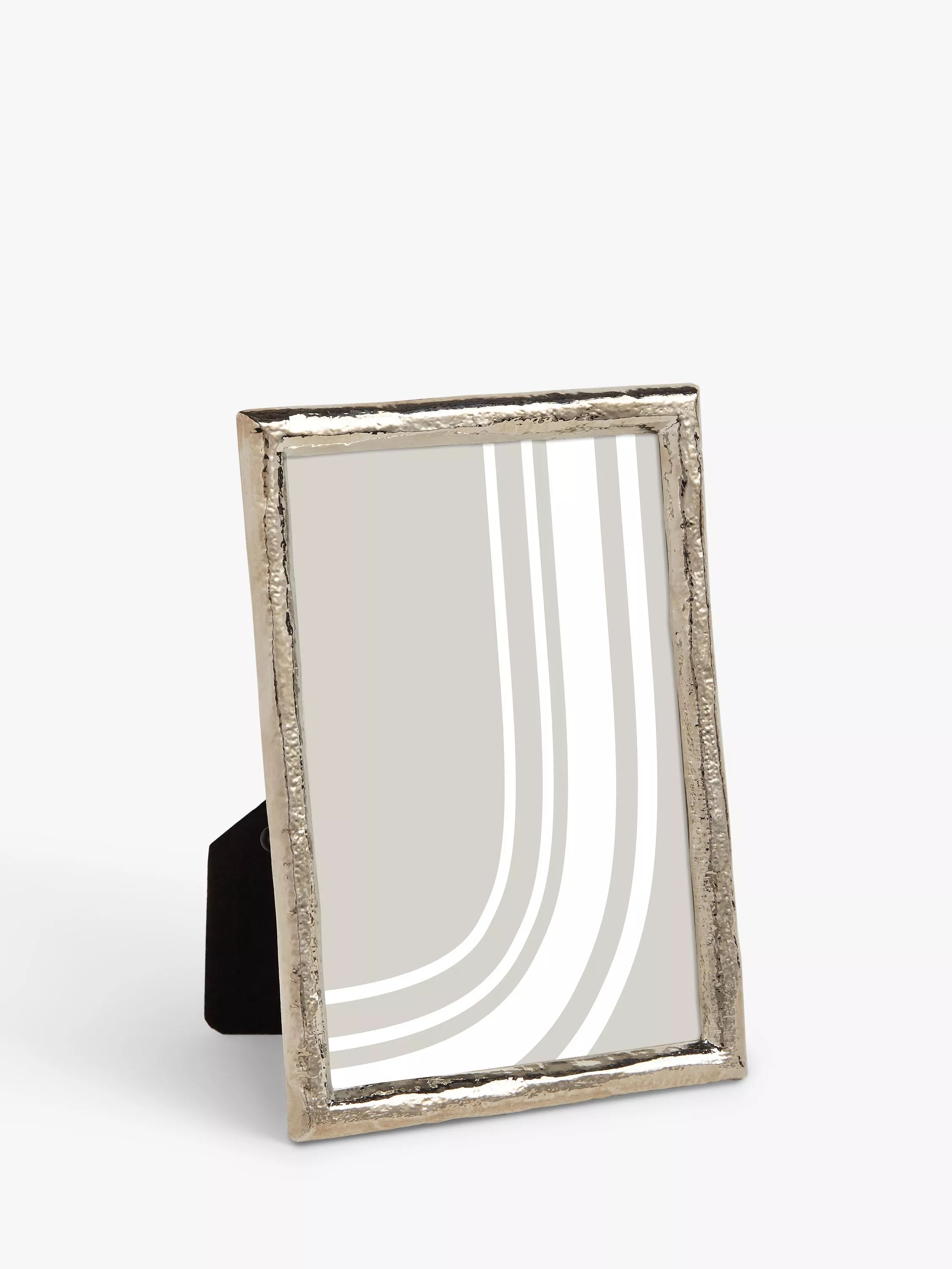 A rustic, antique-effect design, this freestanding photo frame has a metallic finish and slim profile.