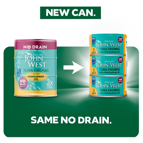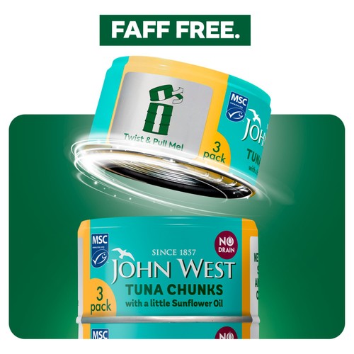 Introducing No Drain ECOTWIST® multipack – our most eco-friendly, faff free option yet! Featuring an aluminum SmartStrip®, it’s easy to open with a simple twist. Fully recyclable, it eliminates messy plastic waste. The new can has improved the quality of the tuna keeping it chunky and as succulent as ever. New can, Same No Drain.