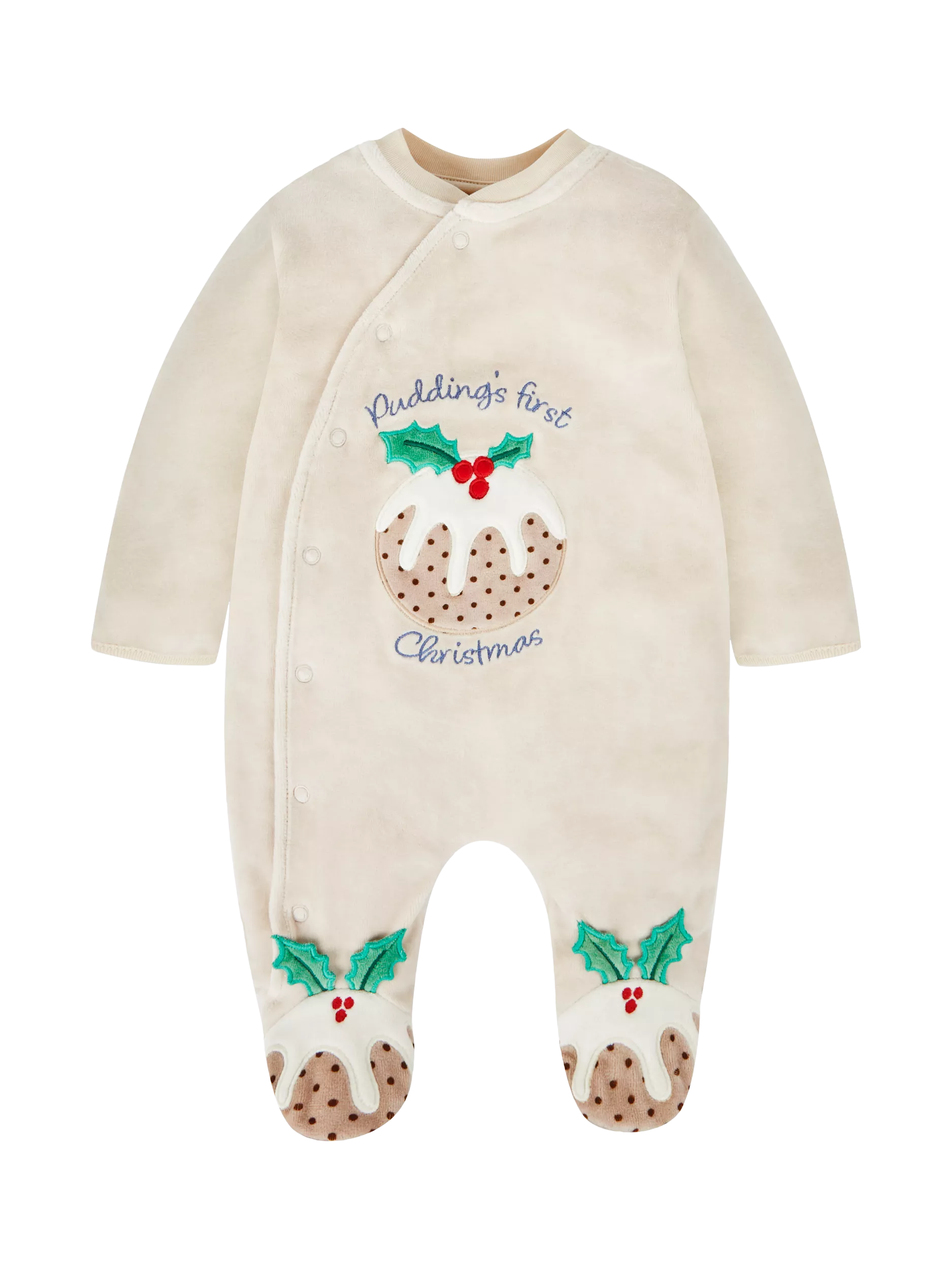 • Adorable Christmas Pudding Appliqué: Adds a festive touch to this cozy sleepsuit.