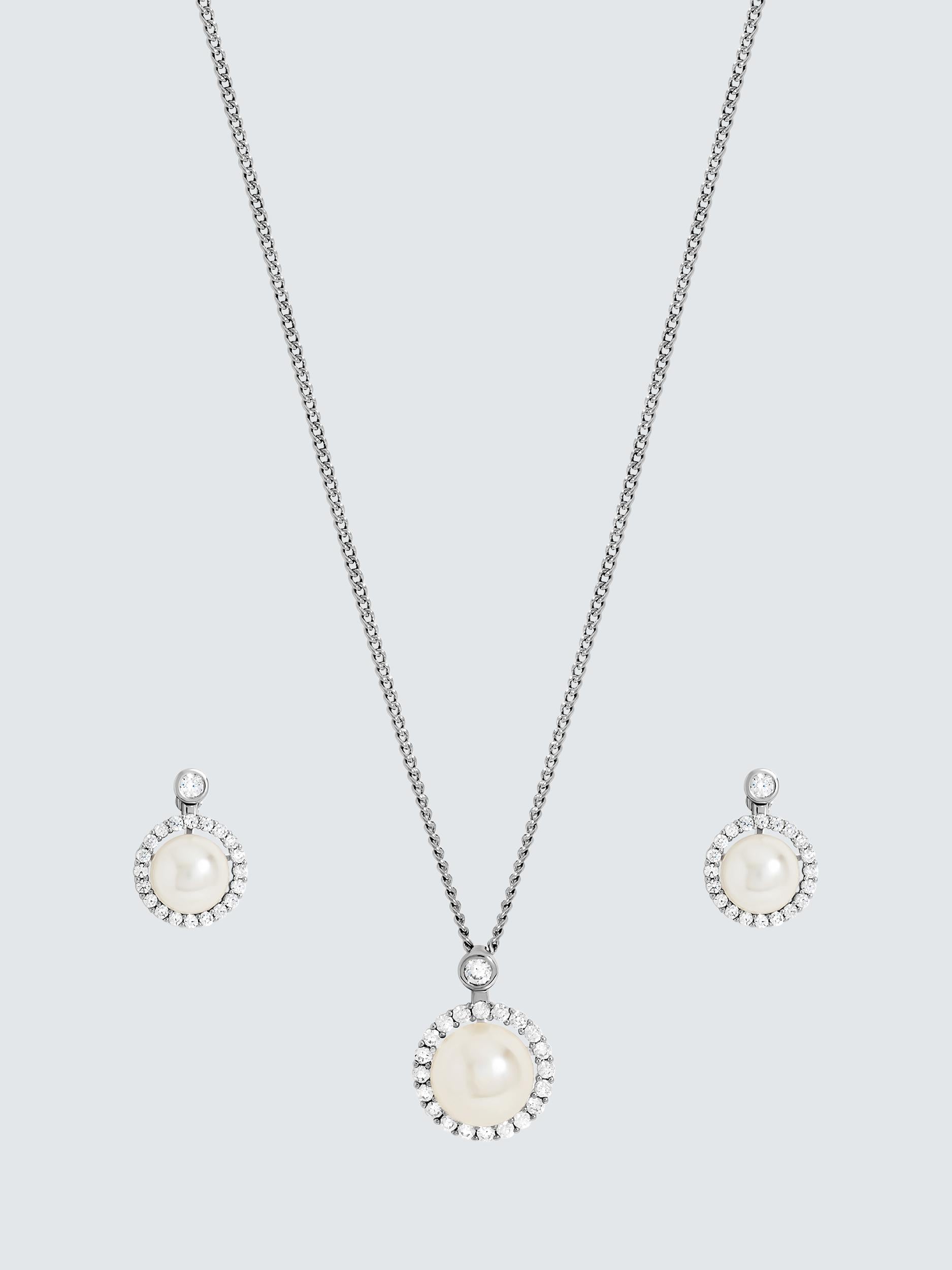 Jon Richard Zirconia Halo Pearl Earring Set Silver