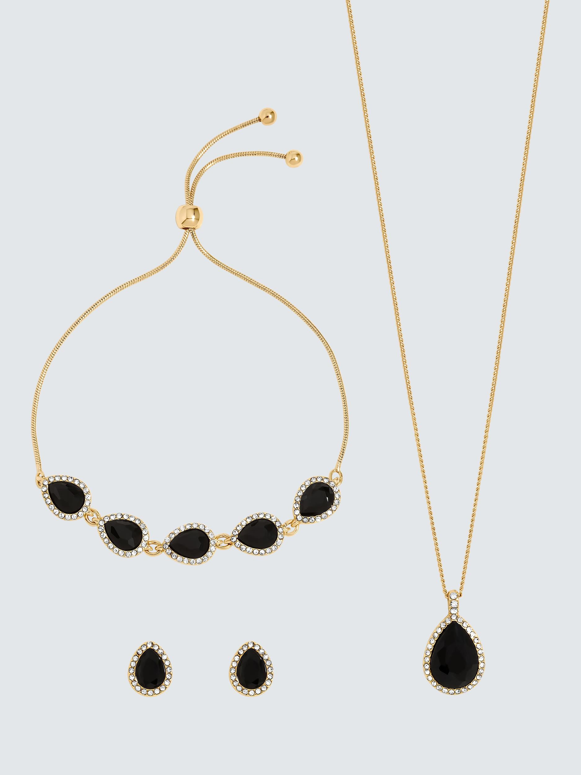 Discover the Jon Richard Jet Pear Drop Trio Set, a striking addition to fine accessories. This jewellery set showcases deep black jet stones complemented by a luxurious gold plated finish. It is crafted to deliver significant visual impact and sophisticated style for any special event. This trio provides bold elegance.