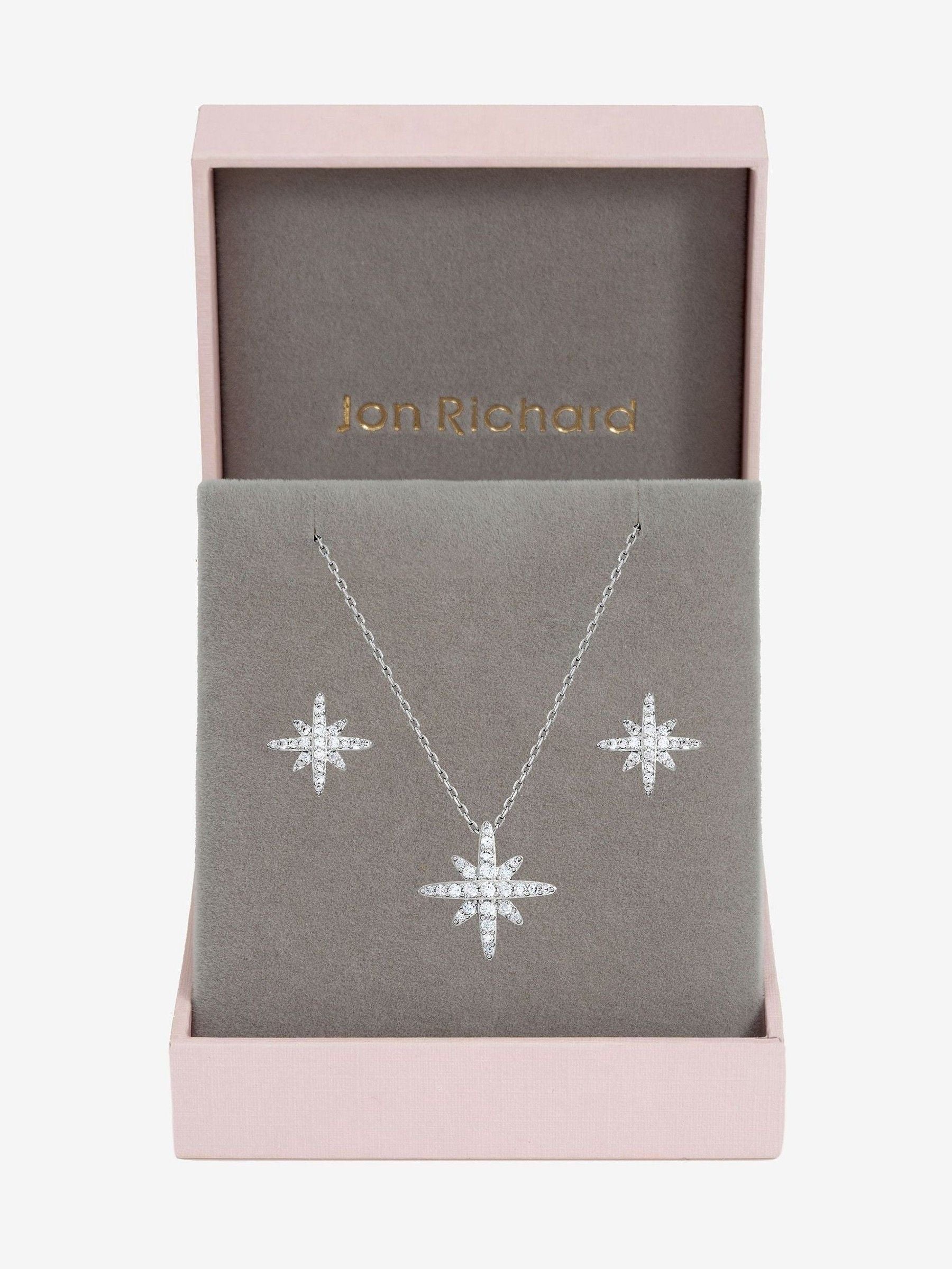 Our Rhodium Plated and Pave Star Box Set is designed to add a touch of celestial charm to any look. Featuring star designs, accented with sparkling crystals and finished in radiant rhodium plating, this elegant set is the perfect way to bring a little stardust to your jewellery collection. Fastening: Lobster Clasp. Width dimension: 15.7mm, 12.7mm. Length dimension: 15.7mm, 12.7mm. Chain Length: 16'. Extender Length: 2'. Material: Rhodium Plated Base Metal.
