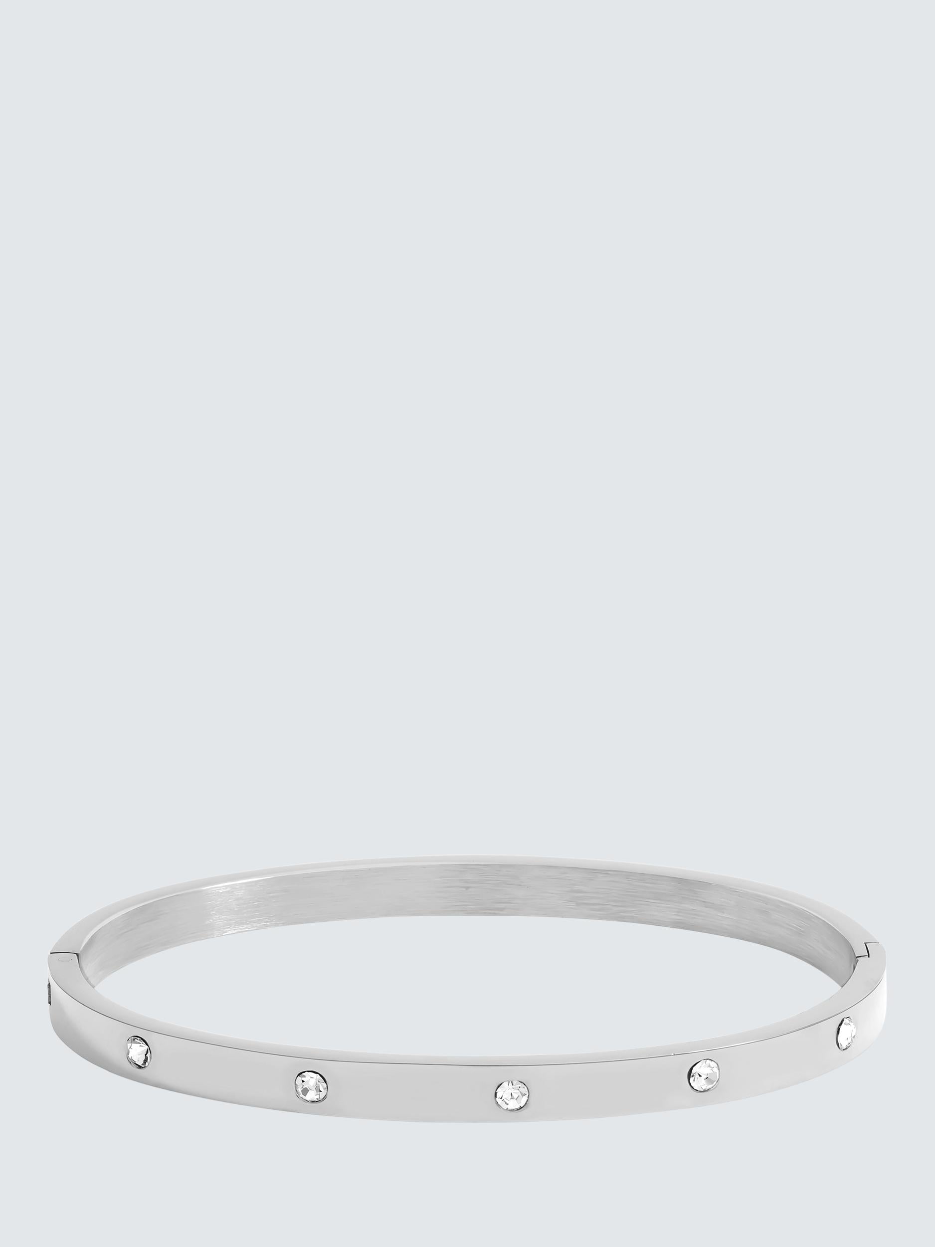 Jon Richard offers this polished bangle, beautifully crafted from stainless steel for durability. Sterling silver plating gives an elevated, shimmering look, enhanced by integrated crystal detailing. This durable jewellery benefits from advanced PVD coating technology, guaranteeing a completely waterproof finish for essential daily wear.