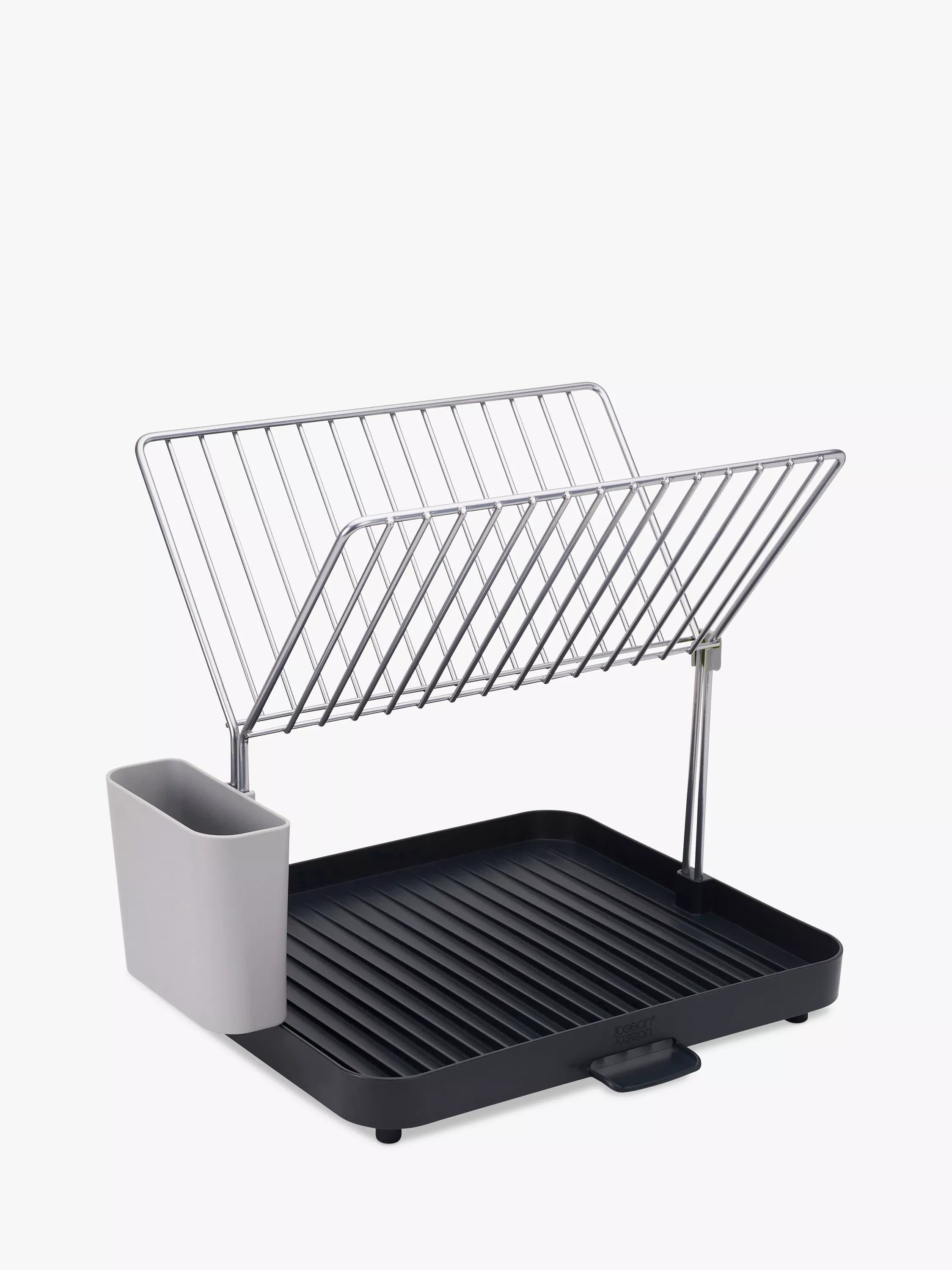 The large self-draining utensil pot that clips onto the side means you can drain everything for four full place-settings in a very small space. The base features sloping ribs to allow water to drain freely, a fixed draining spout for emptying into the sink and non-slip feet. The whole unit dismantles for easy cleaning.