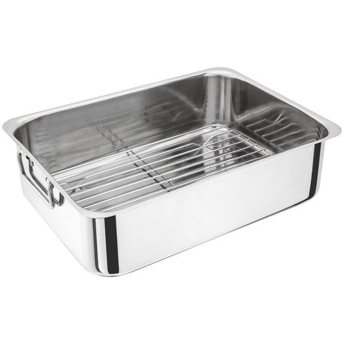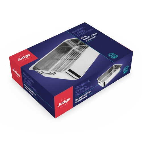 This Judge Speciality Cookware roasting pan simplifies preparing large meals, like your Sunday joint. Its substantial size accommodates most large cuts of meat efficiently. The included removable rack offers versatile cooking options when preparing joints or poultry.