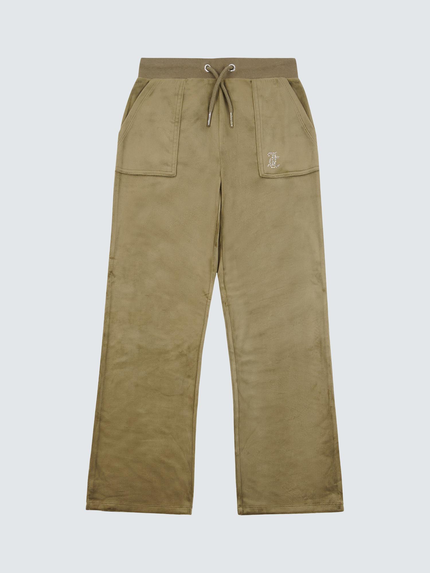These Juicy Couture Kids Diamante Wide Leg Jogging Bottoms in Tea Leaf offer plush velour luxury for children today. The garment features a flattering wide-leg shape and intensely sparkly monogram accents throughout the material. This comfortable piece is essential for any fashionable young wardrobe item. Enjoy premium value always here.