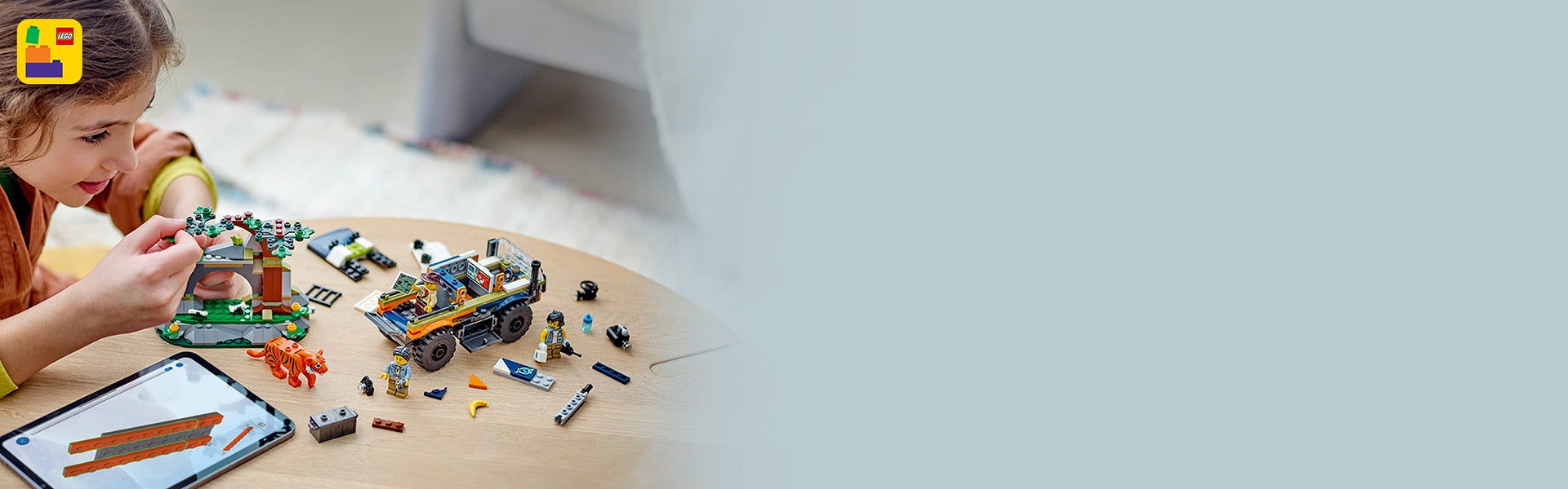 This LEGO jungle toy includes a step-by-step printed building guide and 3D instructions in the LEGO Builder app – a digital building companion with intuitive zoom and rotate tools that enable kids to visualize models from all angles as they build.