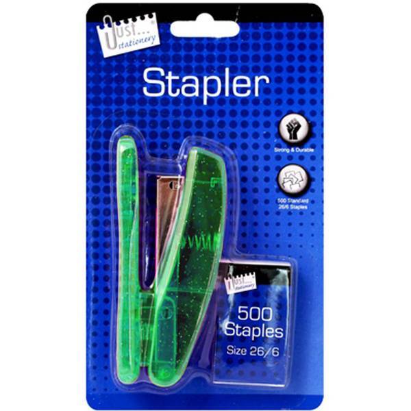 Metallic stapler set. Contains 500 size 26/65 staples. Strong and durable.