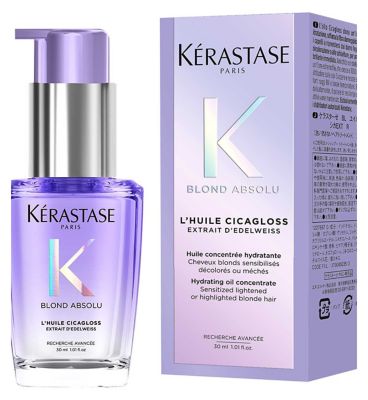 Read MoreThe refillable Kérastase Blond Absolu Huile Cicagloss is a strengthening hair oil that repairs sensitized post-bleached hair. Its oil formula, enriched with Edelweiss, provides deep hydration, strengthens compromised fibre and helps repair sensitised post-bleached hair, leaving it illuminated.