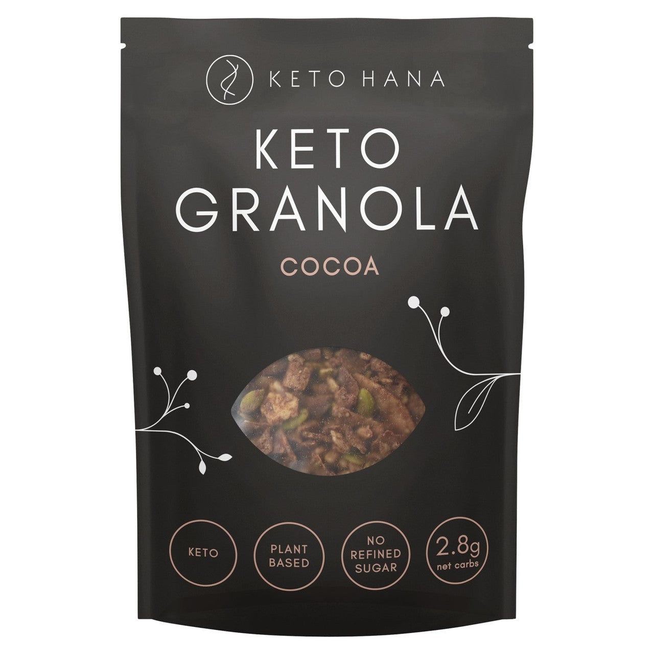 Keto Hana Cocoa Granola offers a simple formulation focused on low-carb nutrition for mindful eating. This product blends essential fats and natural components for a satisfying breakfast or snack option. It is carefully crafted to align with ketogenic dietary requirements using quality, recognised ingredients.