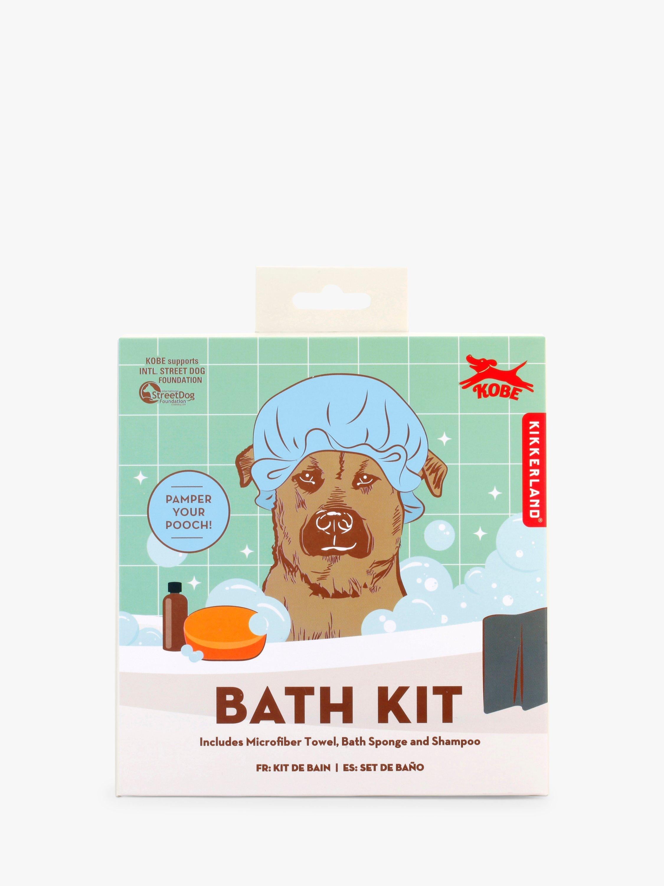 Reviews A set designed for pampering your pooch, this kit comes with a microfibre towel, bath sponge, and shampoo.