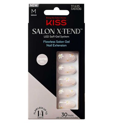 Achieve a professional, sculpted finish at home with the KISS Salon X-tend LED Soft Gel System. This kit includes 34 decorated nails in a Pink Medium Almond shape, delivering salon quality results without the appointment. Enjoy up to 14 days of flawless wear from these ready-to-wear gel extensions.