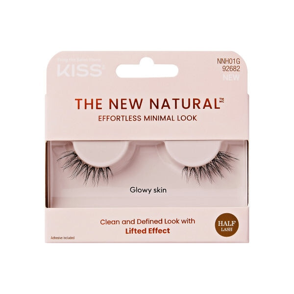 The Kiss New Natural Half Lash 01 belongs to a collection focused on achieving subtle definition. These specific lashes are engineered to support a sought-after 'no makeup makeup aesthetic' for a refined, gentle look. They deliver a flawlessly imperfect finish that integrates seamlessly with your own lash line for easy application.