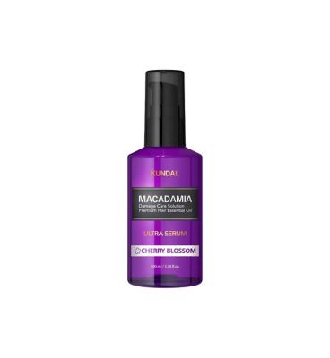 Discover the Kundal Macadamia Hair Serum in the delicate Cherry Blossom scent for enhanced daily care. This premium essential oil is specifically formulated to deliver nourishment and a noticeable glossy finish to your hair structure.