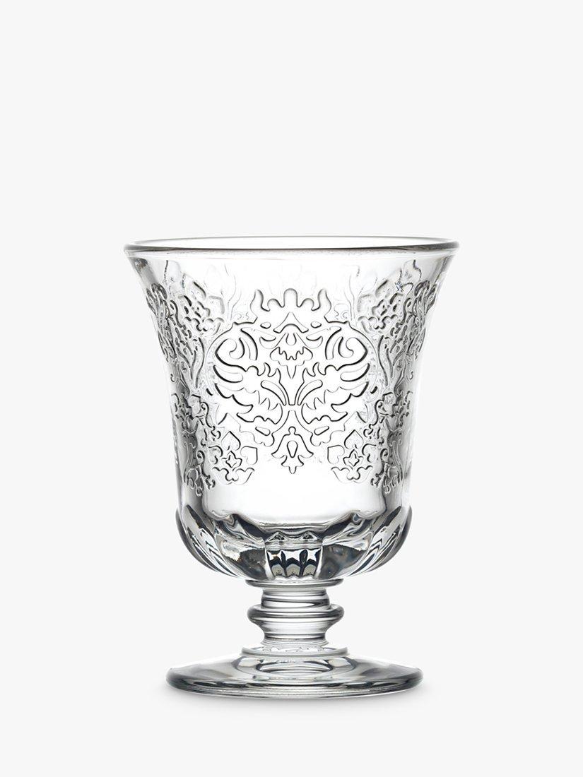 Taking its name from the Château d'Amboise in the Loire Valley in France, this design draws inspiration from fifteenth-century Venetian glassware. The intricate pressed-glass pattern features almonds, peaks and a raised floral decoration.