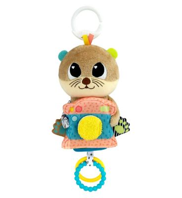 • Includes colourful dangling rings to promote grasping and fine motor control.