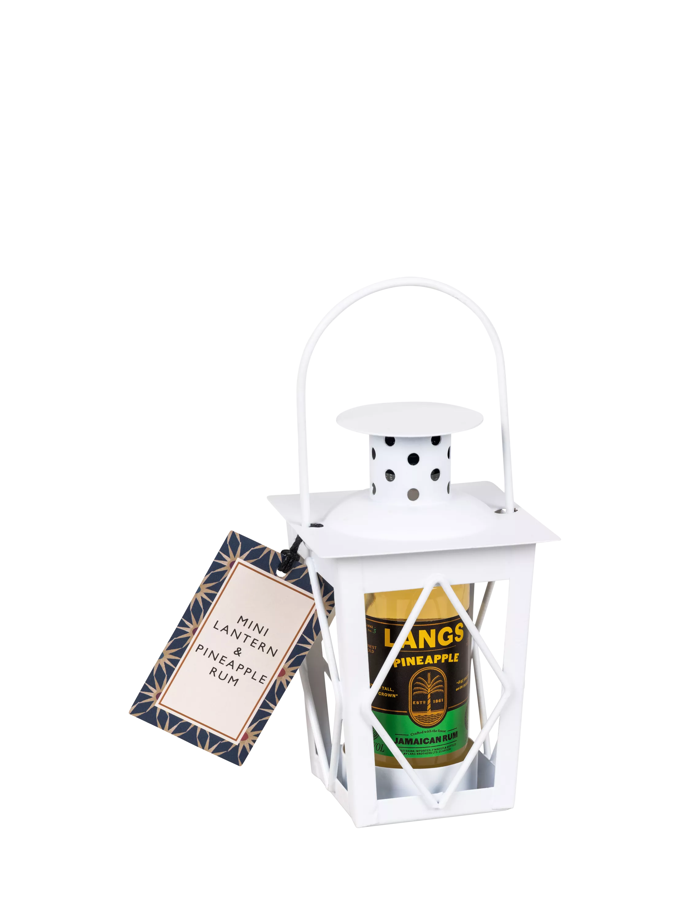 A mini tealight lantern packed with a miniature bottle of Langs Pineapple Jamaican Rum.