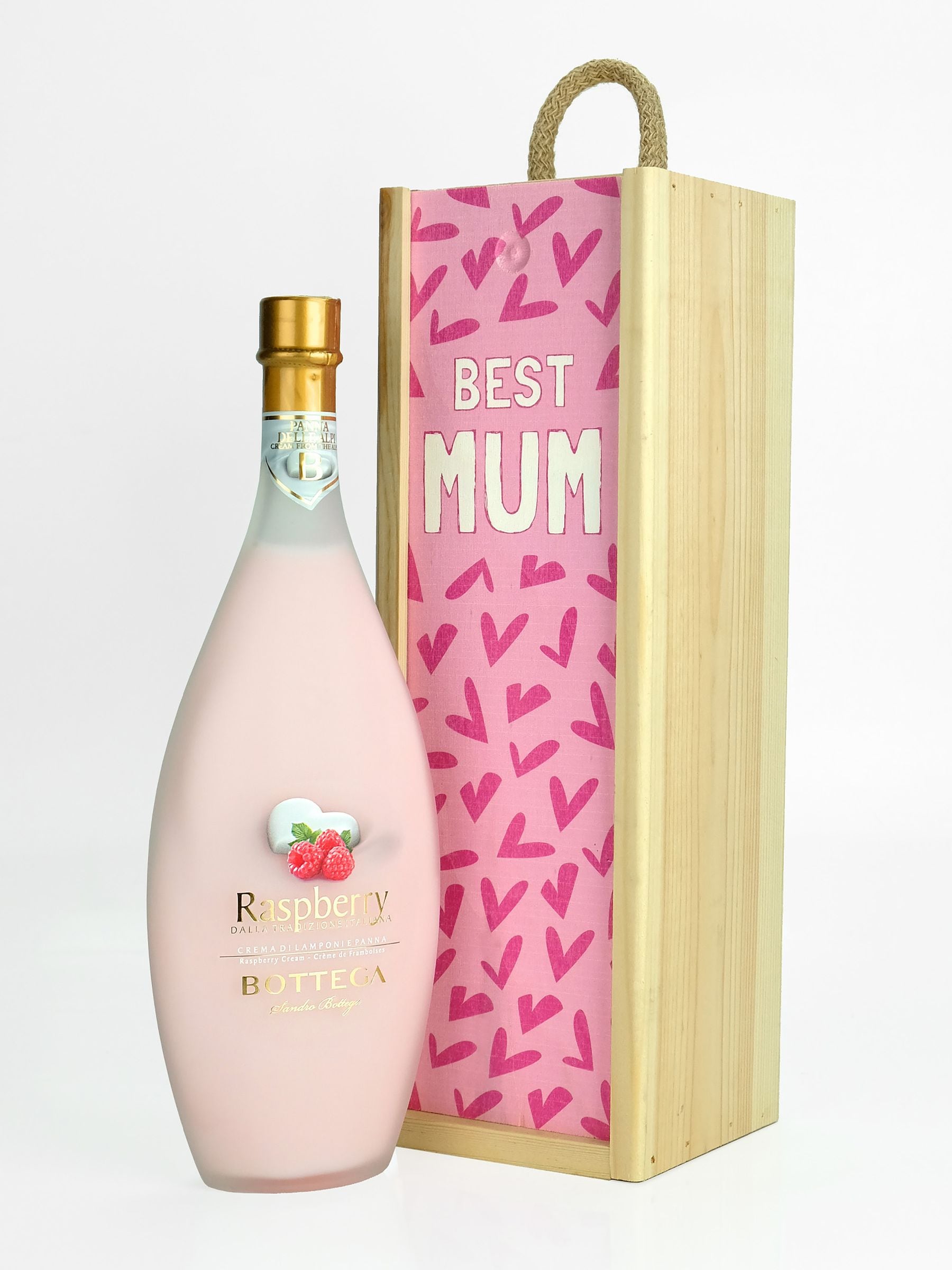 The Bottega Raspberry Cream Liqueur Gift in a Best Mum-Themed Wooden Gift Box is a delightful present perfect for any mother who enjoys indulgent drinks. The gift set comes with a 500ml bottle of Bottega Raspberry Cream Liqueur, which is a sweet and fruity drink with a smooth and velvety texture. The creamy liqueur is made with high-quality Italian ingredients and has subtle notes of fresh raspberries and vanilla. Volume 500ml, ABV 15.0%.