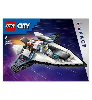 This futuristic LEGO City Interstellar Spaceship toy (60430) is built for space adventurers aged six and older. The single-seat spacecraft is engineered for fast travel to distant cosmic locations. Kids can power up the speed mechanism for exciting deep-space missions.