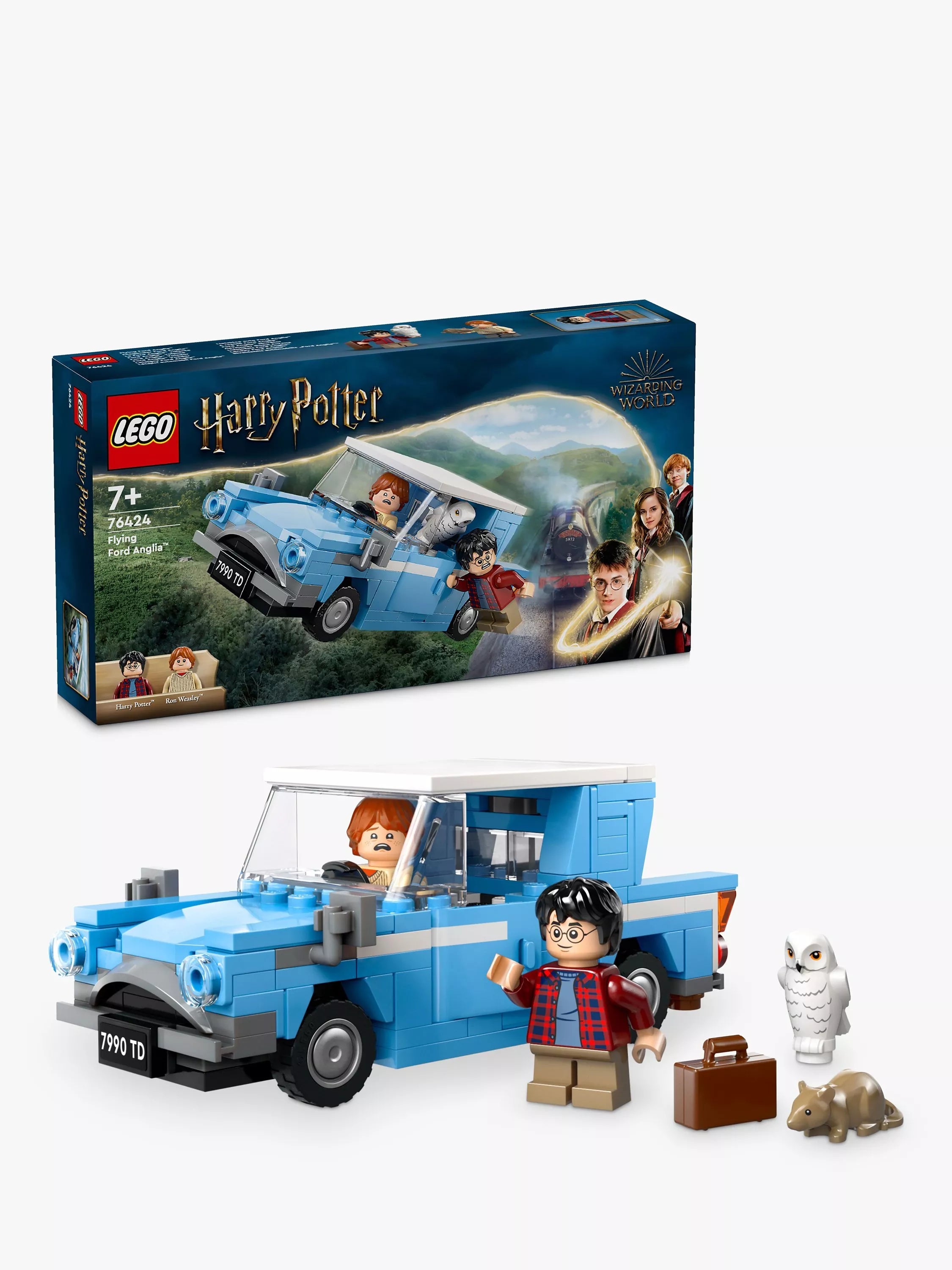 Fly to Hogwarts with Ron Weasley and Harry Potter in the Weasleys enchanted Ford Anglia! Put their wands in the boot along with the suitcase and Rons pet rat, Scabbers. Don't worry, there's room for Harry's snowy owl Hedwig in the back of the car too! Then, with Ron in the drivers seat and Harry beside him, launch into the sky and begin your magical journey!
