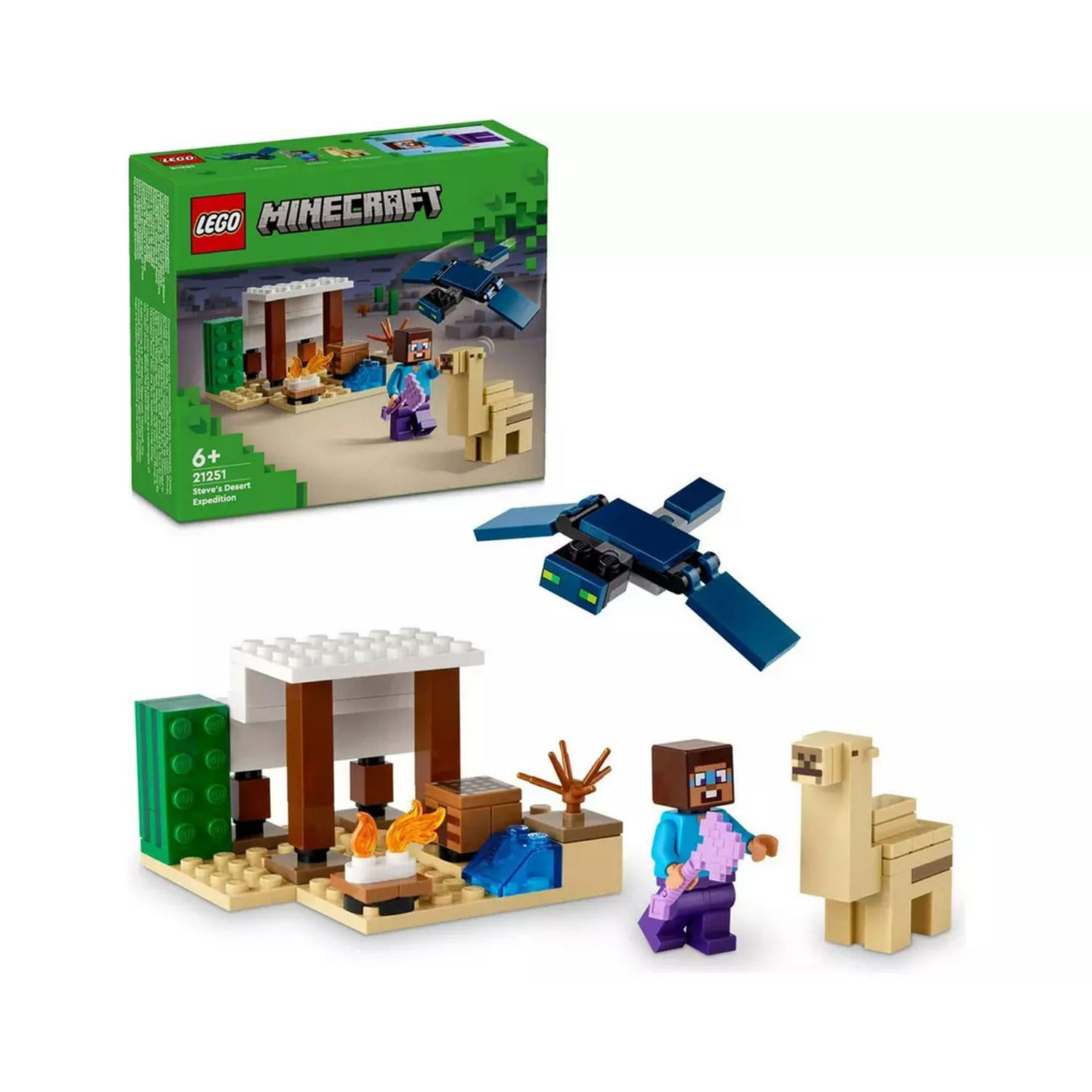 Dive into the blocky world of Minecraft with the LEGO Minecraft Steve's Desert Expedition set (21251). This construction toy allows builders aged 6 and up to assemble a detailed desert outpost scene. It combines creative building with popular video game characters for engaging adventures in this great LEGO building set.