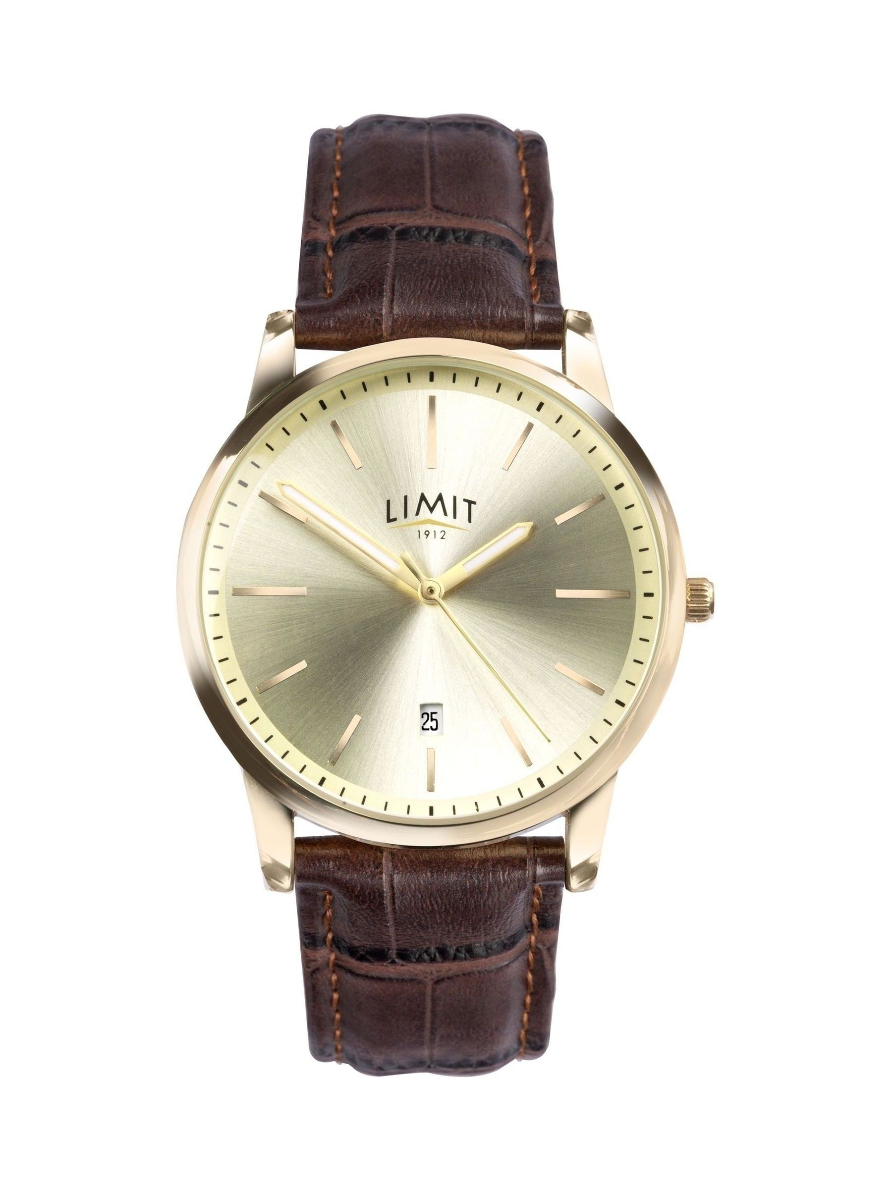 Limit 38mm Mens Round Gold Analogue Watch with Brown Strap