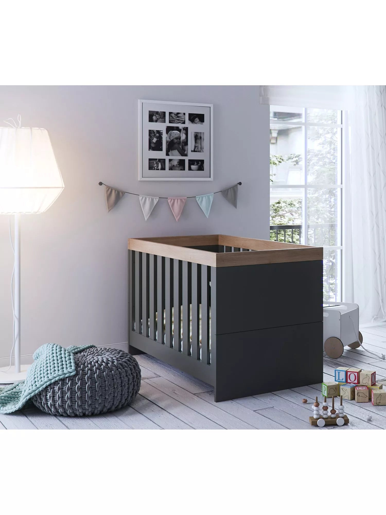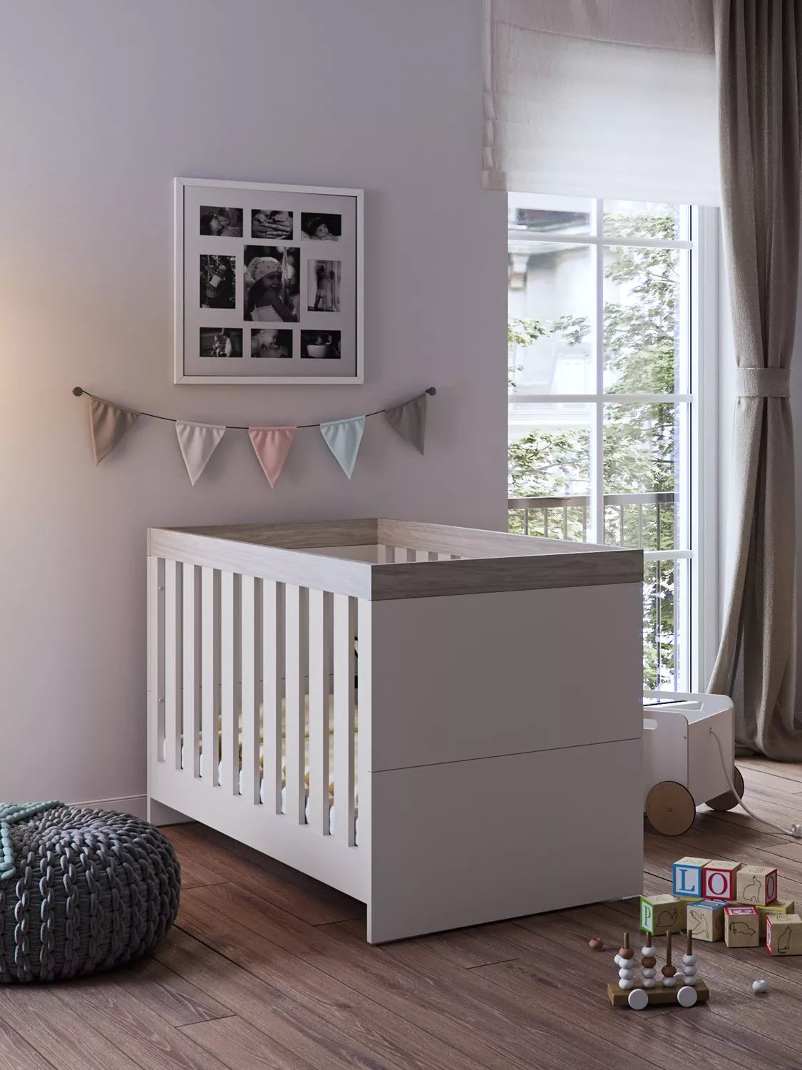 The Burlington range from Little Acorns features stylish and modern Scandinavian-inspired designs with attractive oak accents. This cotbed is designed for your child (and you) to enjoy a good night's rest. A substantial construction, it fits in any modern or traditional nursery, with its two-tone solid ends and chunky wide-slatted sides.