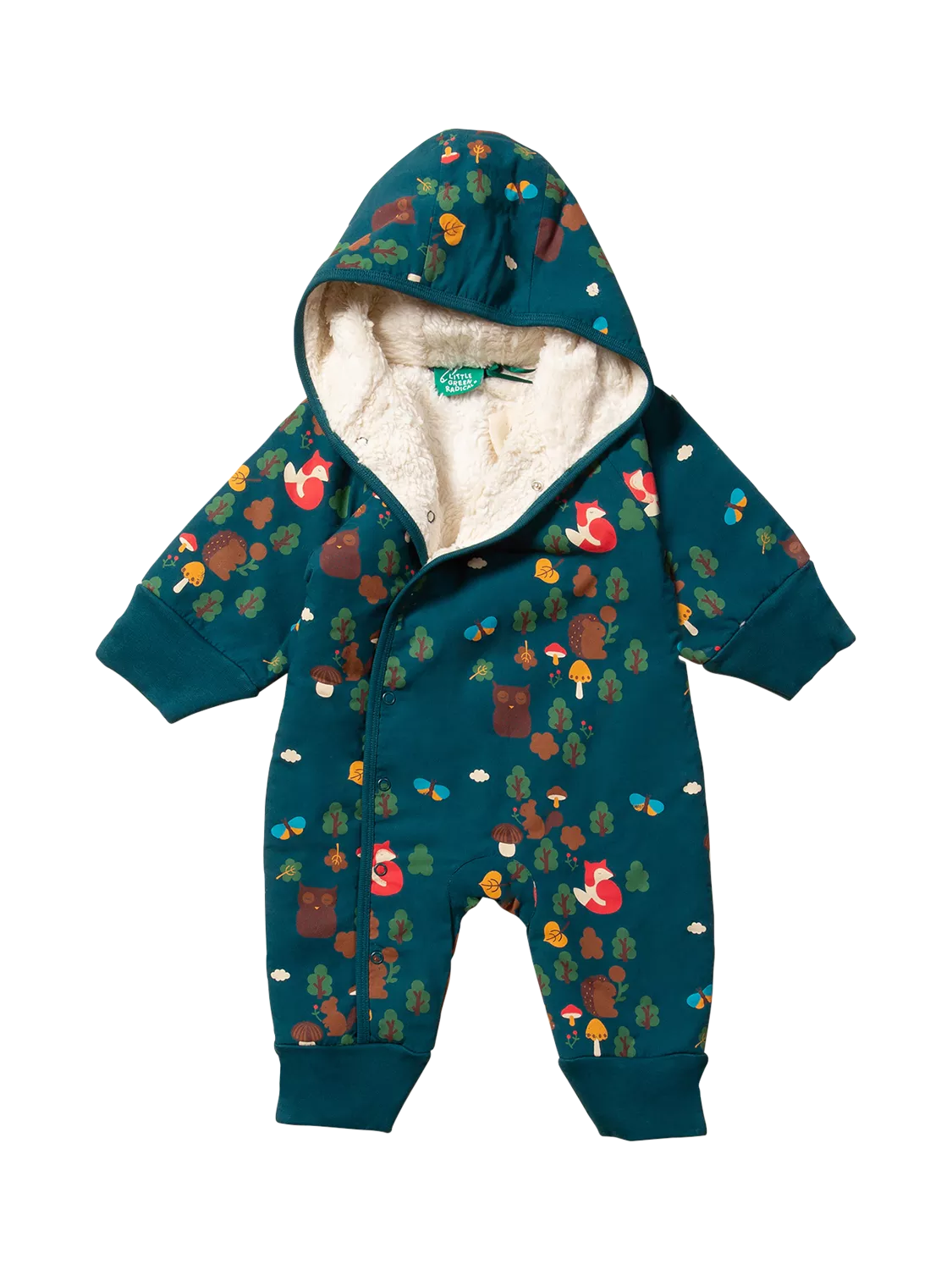 Keep your little one cosy and warm this winter with the Little Green Radicals Baby Forest Snowsuit. This adorable snowsuit is perfect for keeping toddlers snug during outdoor adventures or as a pram suit. Made with soft organic cotton sherpa lining and durable poplin, it offers both comfort and practicality.